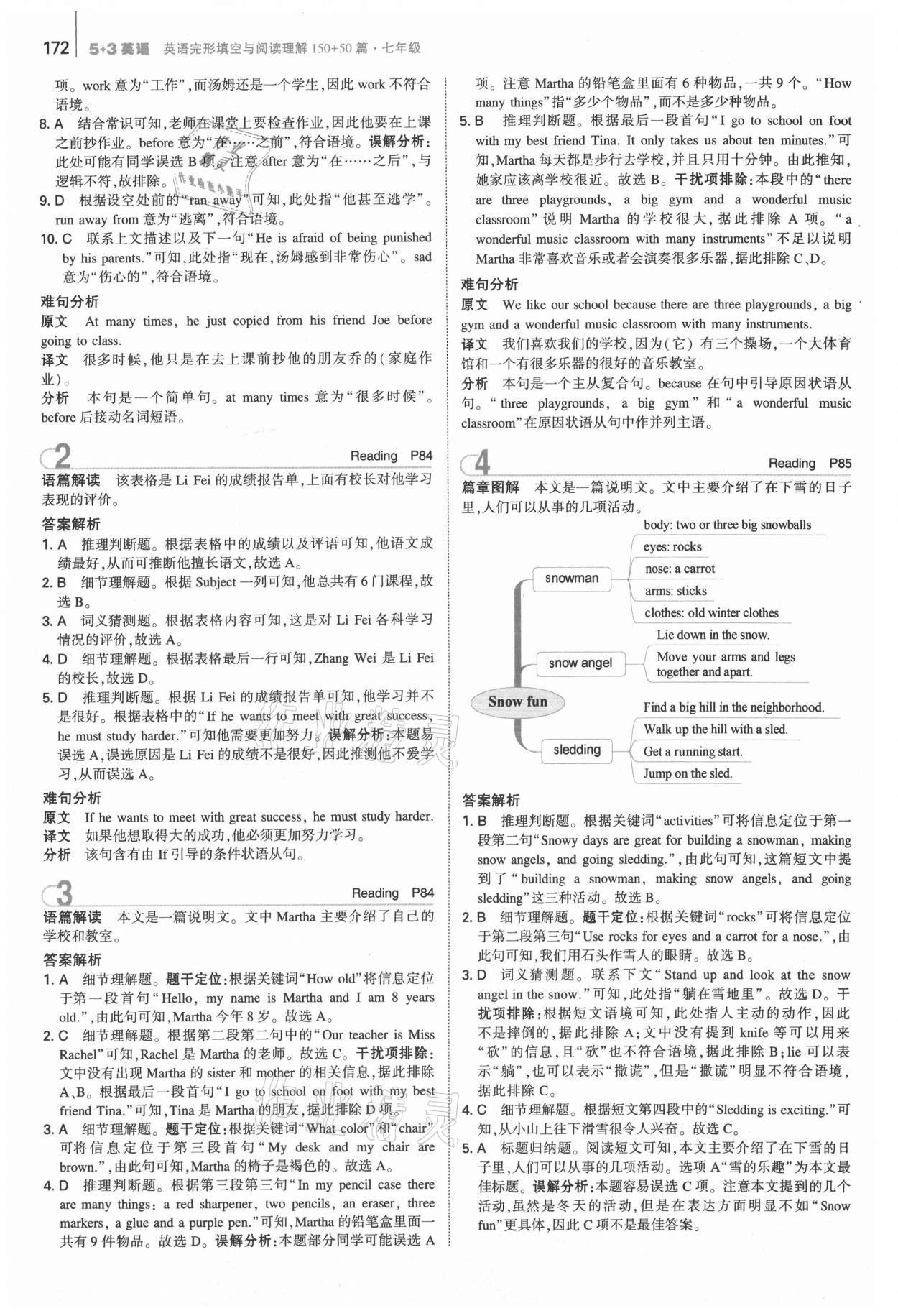 2021年53English七年级英语完形填空与阅读理解150加50篇