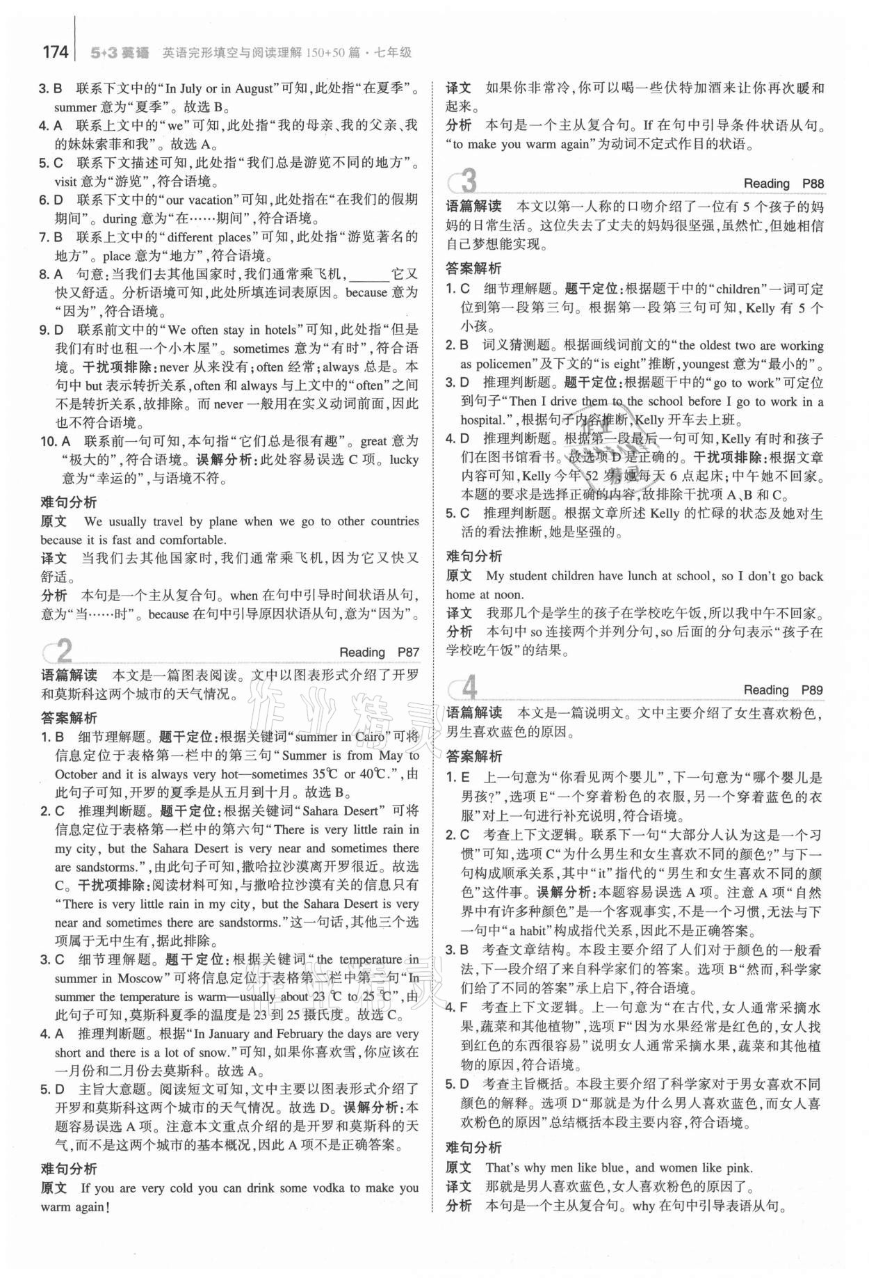 注:目前有些书本章节名称可能整理的还不是很完善,但都是按照顺序排列的,请同学们按照顺序仔细查找。练习册 2021年53English七年级英语完形填空与阅读理解150加50篇 答案主要是用来给同学们做完题方便对答案用的,请勿直接抄袭。