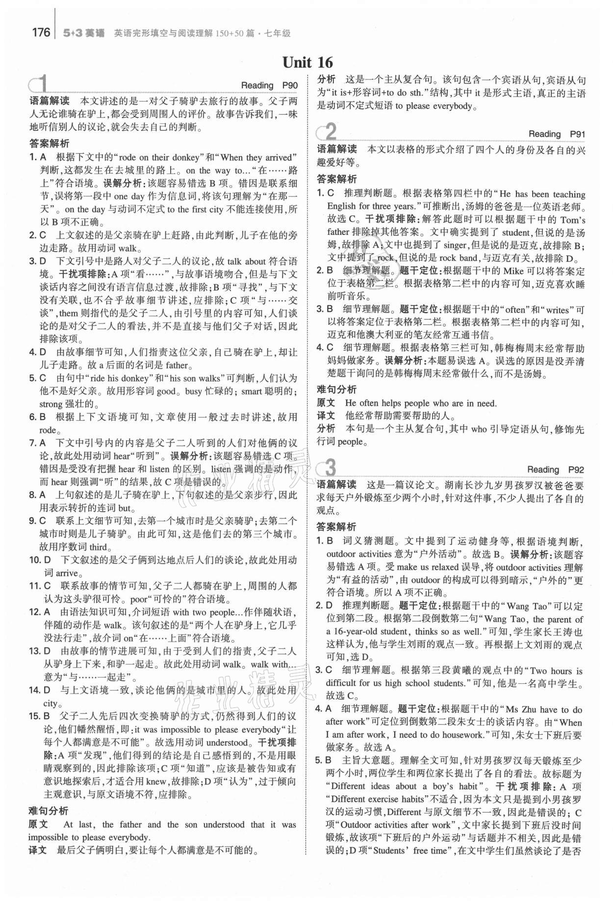 2021年53English七年级英语完形填空与阅读理解150加50篇