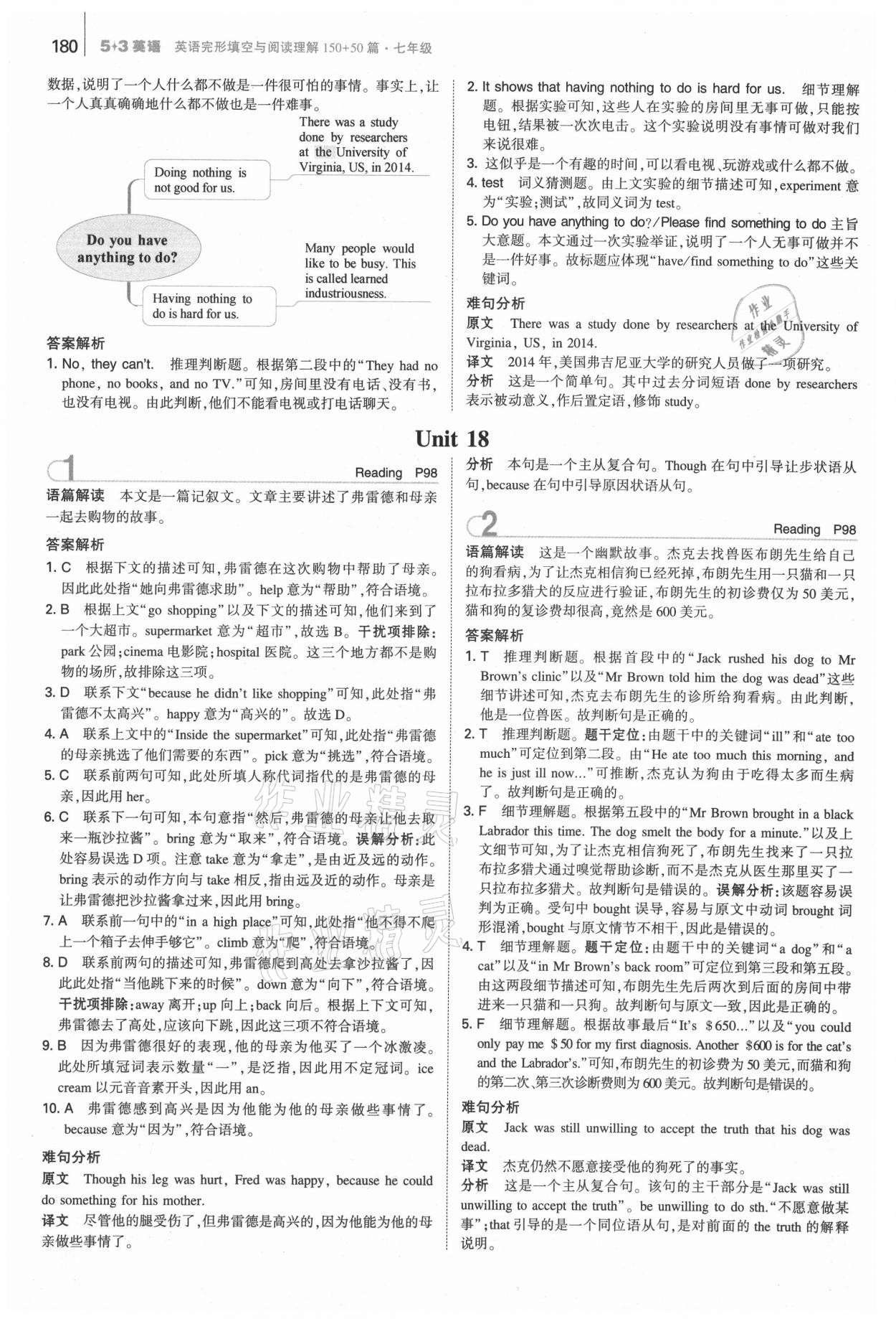 注:目前有些书本章节名称可能整理的还不是很完善,但都是按照顺序排列的,请同学们按照顺序仔细查找。练习册 2021年53English七年级英语完形填空与阅读理解150加50篇 答案主要是用来给同学们做完题方便对答案用的,请勿直接抄袭。
