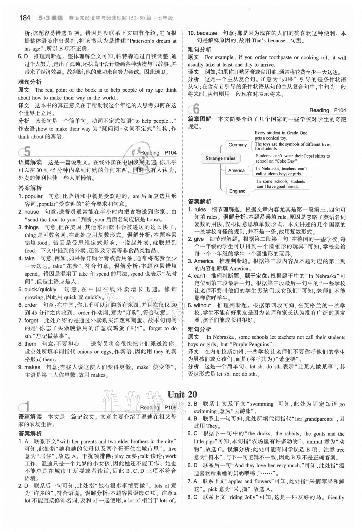 注:目前有些书本章节名称可能整理的还不是很完善,但都是按照顺序排列的,请同学们按照顺序仔细查找。练习册 2021年53English七年级英语完形填空与阅读理解150加50篇 答案主要是用来给同学们做完题方便对答案用的,请勿直接抄袭。