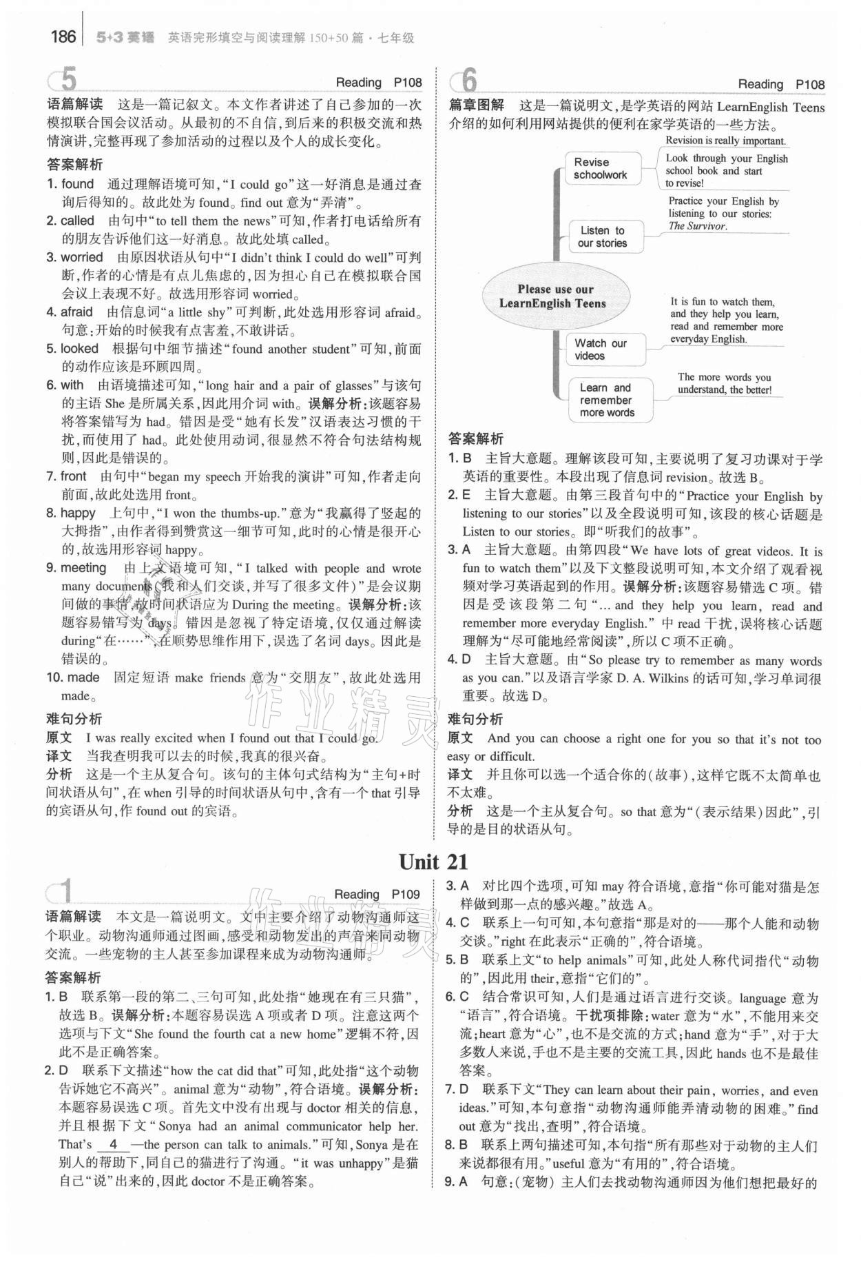 注:目前有些书本章节名称可能整理的还不是很完善,但都是按照顺序排列的,请同学们按照顺序仔细查找。练习册 2021年53English七年级英语完形填空与阅读理解150加50篇 答案主要是用来给同学们做完题方便对答案用的,请勿直接抄袭。