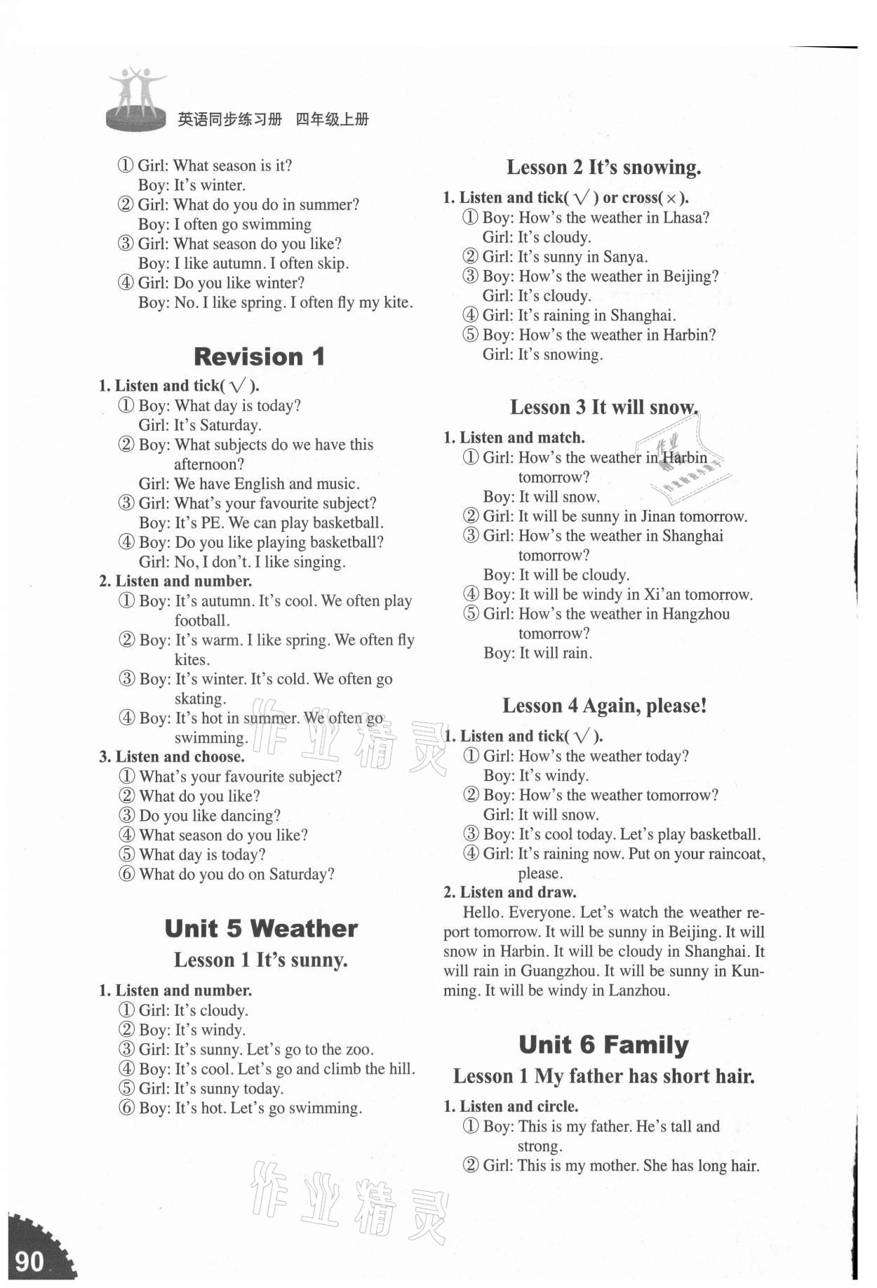 2021年小学同步练习册四年级英语上册鲁科版54制山东专版山东友谊出版社
