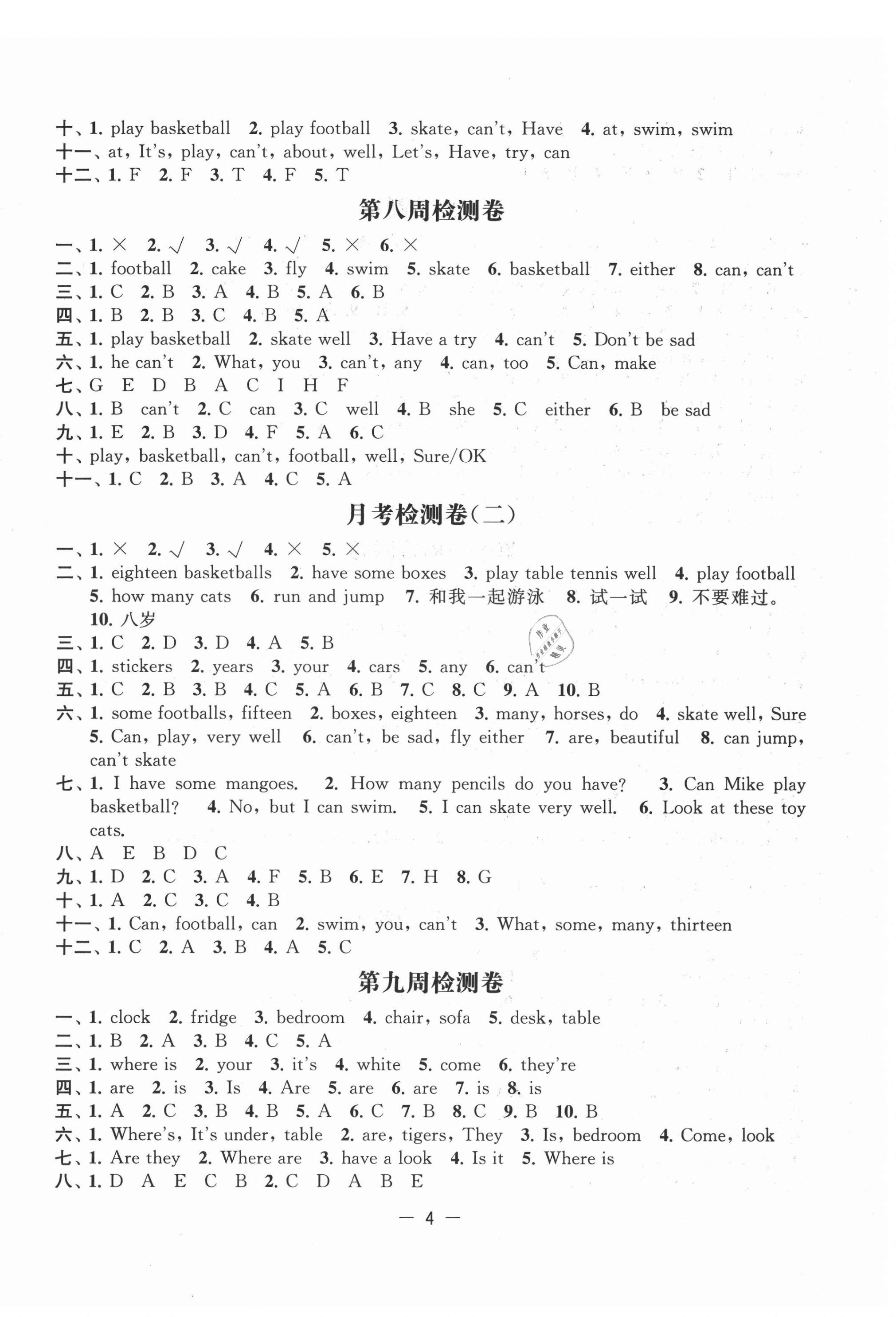 注:目前有些书本章节名称可能整理的还不是很完善,但都是按照顺序排列的,请同学们按照顺序仔细查找。练习册 2021年名校起航全能检测卷四年级英语上册译林版 答案主要是用来给同学们做完题方便对答案用的,请勿直接抄袭。