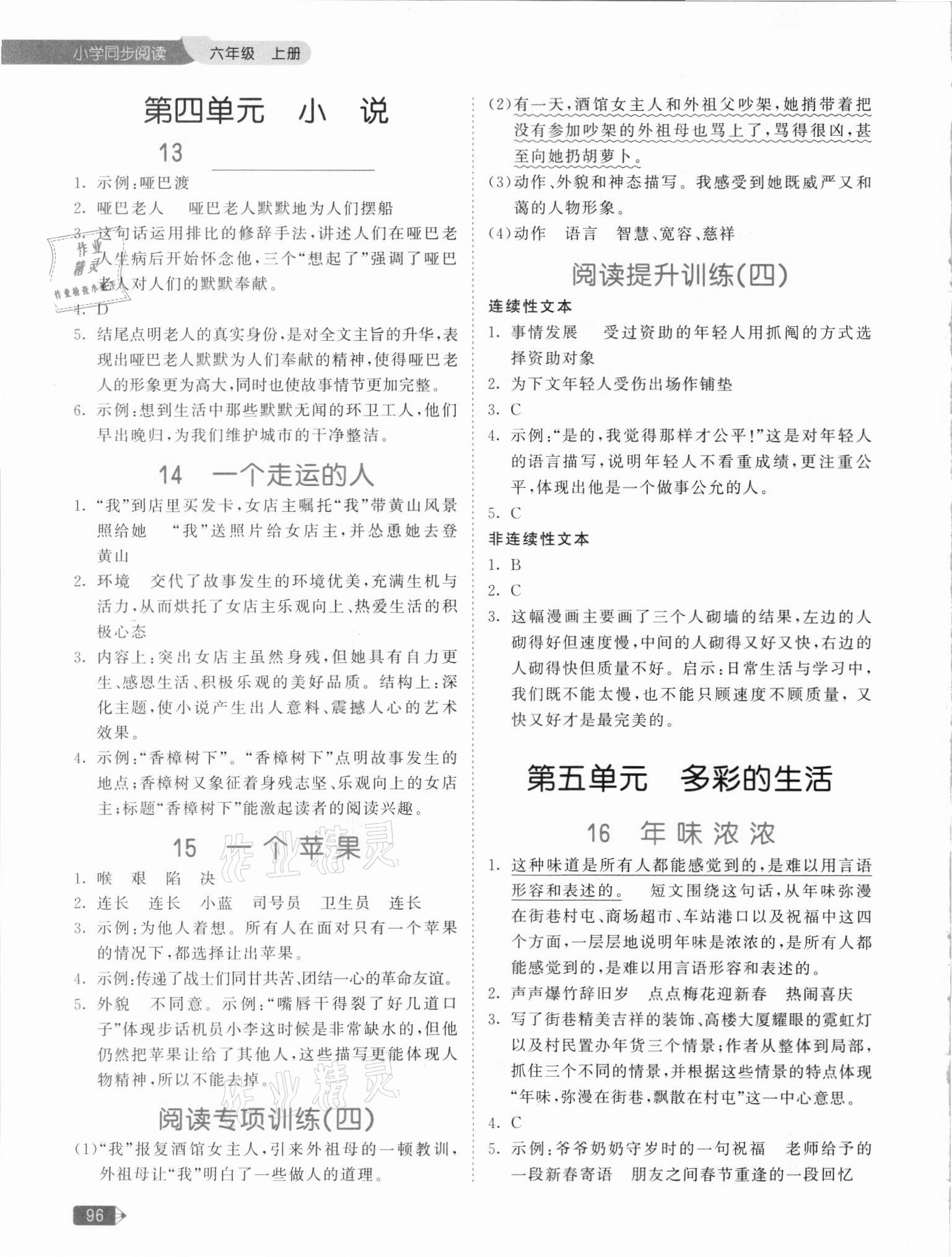 注:目前有些书本章节名称可能整理的还不是很完善,但都是按照顺序排列的,请同学们按照顺序仔细查找。练习册 2021年53天天练小学同步阅读六年级语文上册人教版 答案主要是用来给同学们做完题方便对答案用的,请勿直接抄袭。