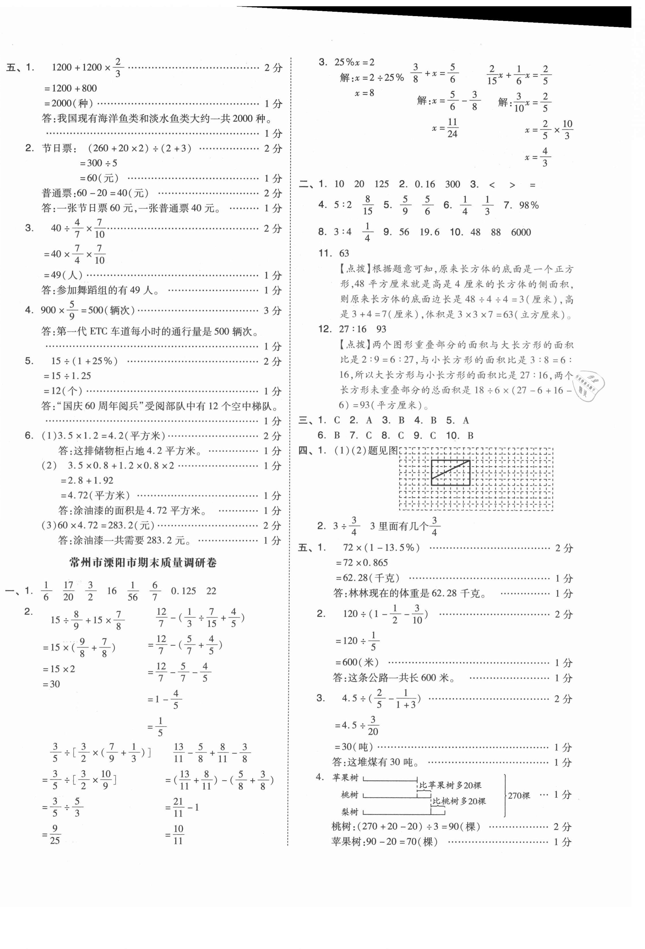 《2021年全品小复习六年级数学上册苏教版江苏专版》