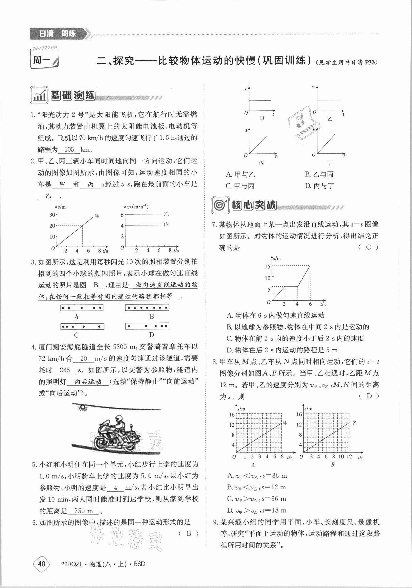 注:目前有些书本章节名称可能整理的还不是很完善,但都是按照顺序排列的,请同学们按照顺序仔细查找。练习册 2021年日清周练八年级物理上册北师大版 答案主要是用来给同学们做完题方便对答案用的,请勿直接抄袭。