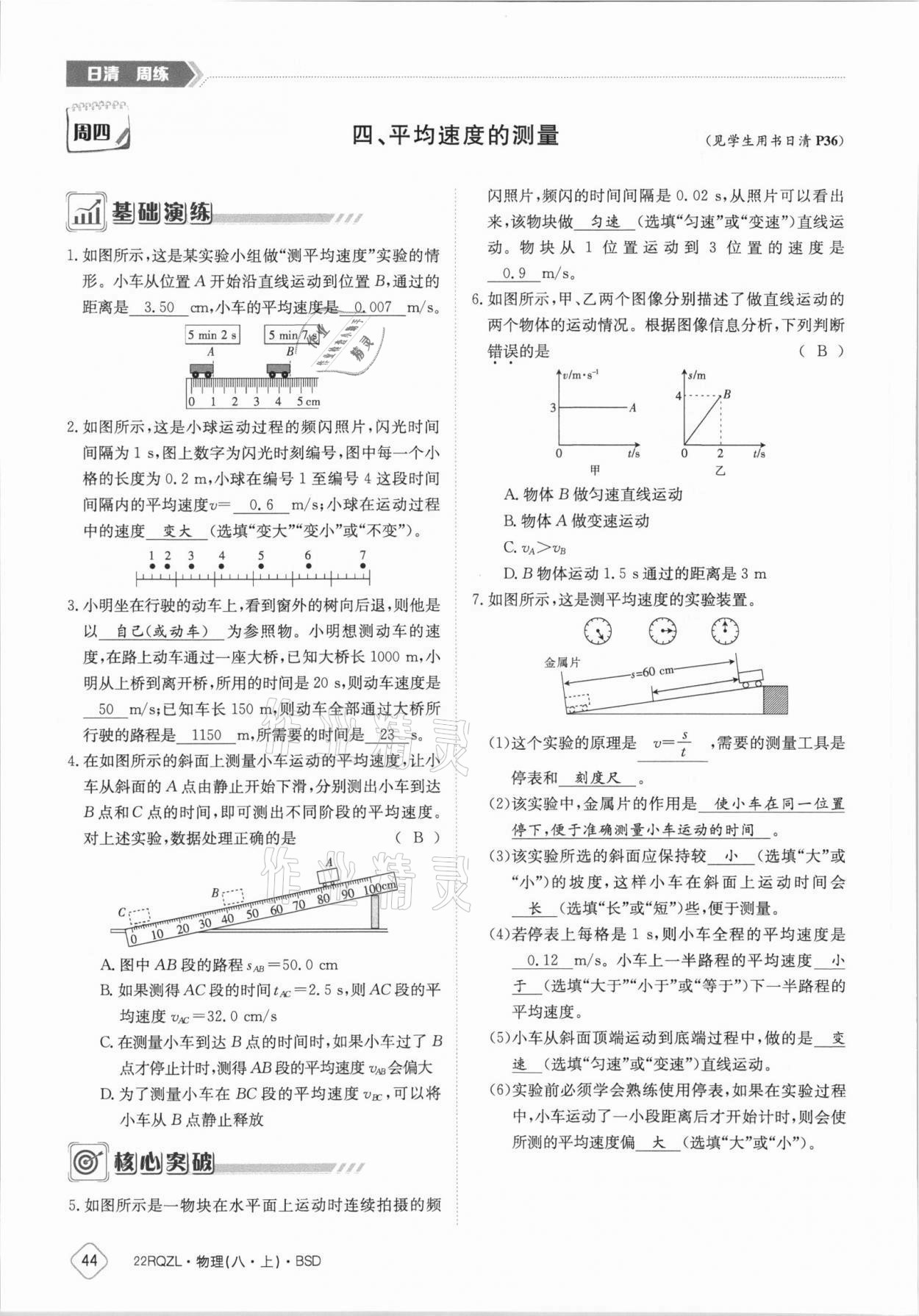 注:目前有些书本章节名称可能整理的还不是很完善,但都是按照顺序排列的,请同学们按照顺序仔细查找。练习册 2021年日清周练八年级物理上册北师大版 答案主要是用来给同学们做完题方便对答案用的,请勿直接抄袭。