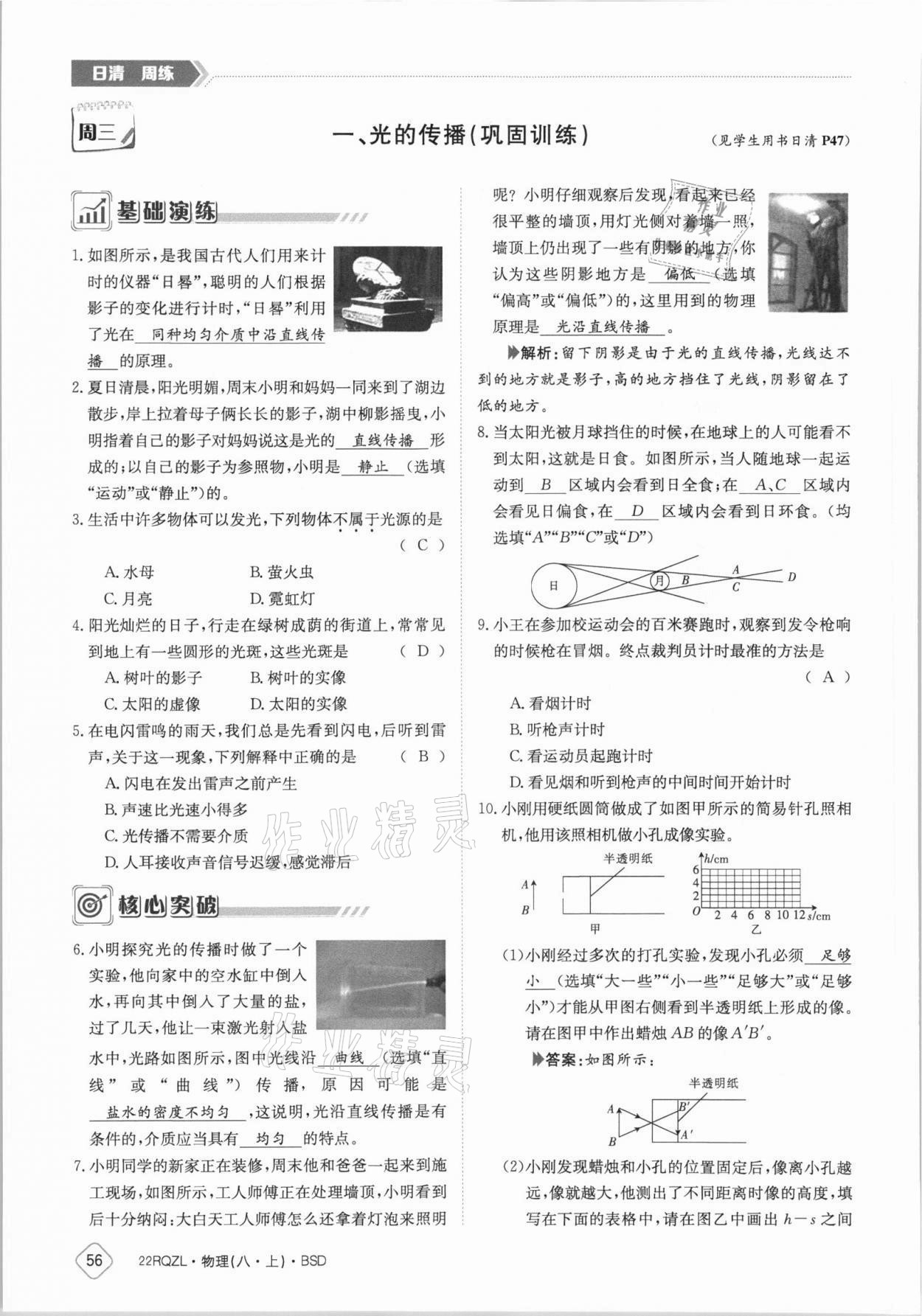 注:目前有些书本章节名称可能整理的还不是很完善,但都是按照顺序排列的,请同学们按照顺序仔细查找。练习册 2021年日清周练八年级物理上册北师大版 答案主要是用来给同学们做完题方便对答案用的,请勿直接抄袭。