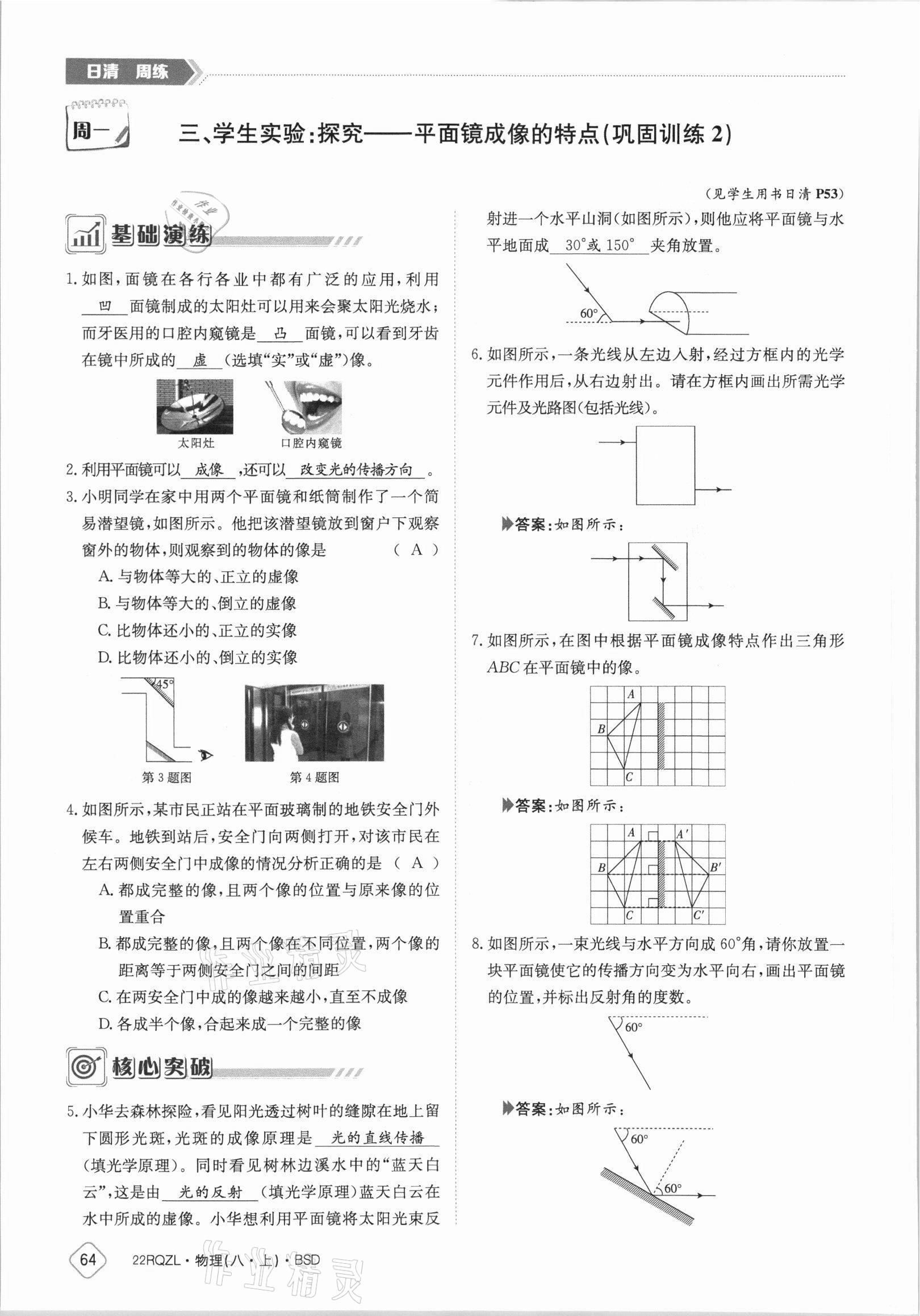 注:目前有些书本章节名称可能整理的还不是很完善,但都是按照顺序排列的,请同学们按照顺序仔细查找。练习册 2021年日清周练八年级物理上册北师大版 答案主要是用来给同学们做完题方便对答案用的,请勿直接抄袭。