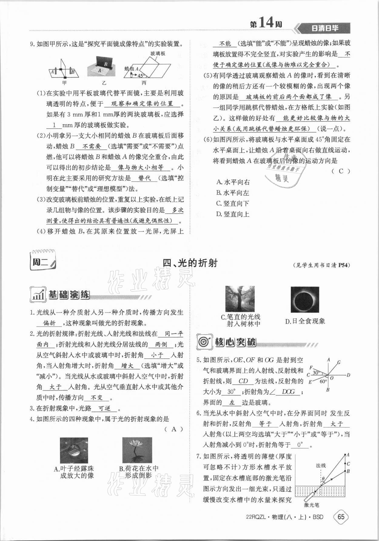 注:目前有些书本章节名称可能整理的还不是很完善,但都是按照顺序排列的,请同学们按照顺序仔细查找。练习册 2021年日清周练八年级物理上册北师大版 答案主要是用来给同学们做完题方便对答案用的,请勿直接抄袭。