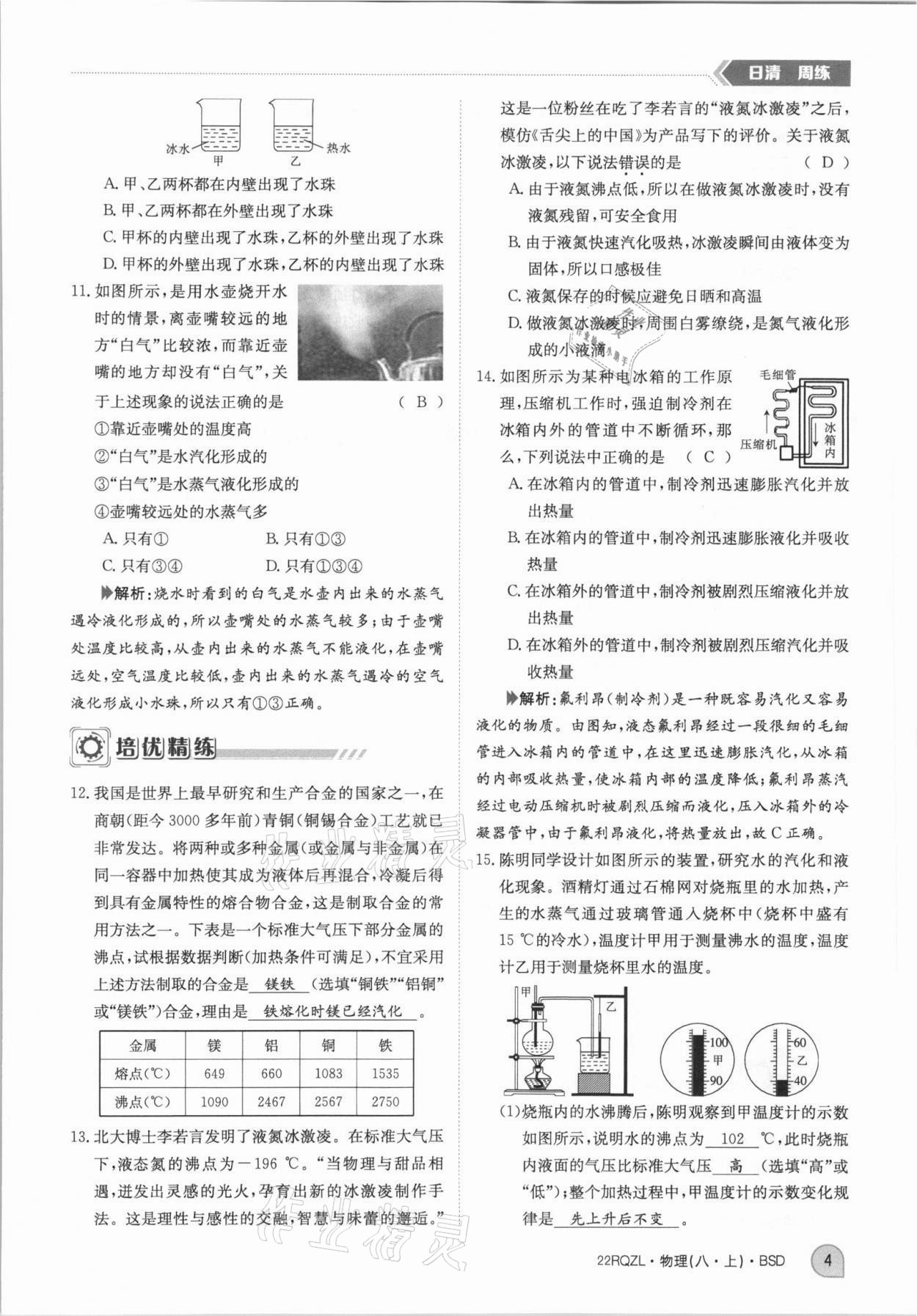 注:目前有些书本章节名称可能整理的还不是很完善,但都是按照顺序排列的,请同学们按照顺序仔细查找。练习册 2021年日清周练八年级物理上册北师大版 答案主要是用来给同学们做完题方便对答案用的,请勿直接抄袭。