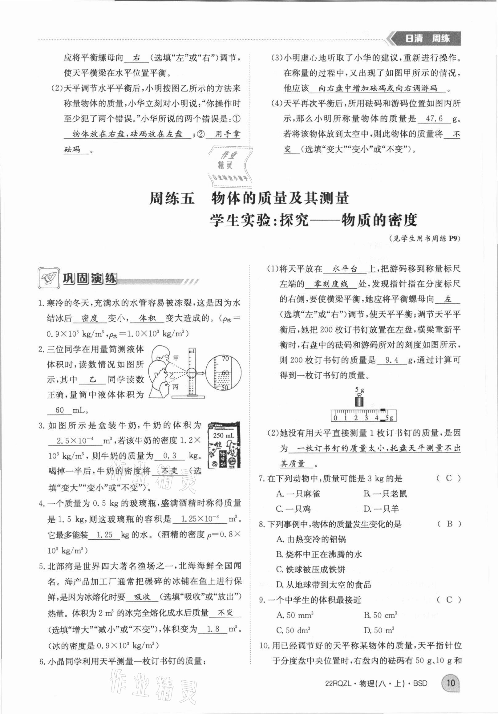 注:目前有些书本章节名称可能整理的还不是很完善,但都是按照顺序排列的,请同学们按照顺序仔细查找。练习册 2021年日清周练八年级物理上册北师大版 答案主要是用来给同学们做完题方便对答案用的,请勿直接抄袭。