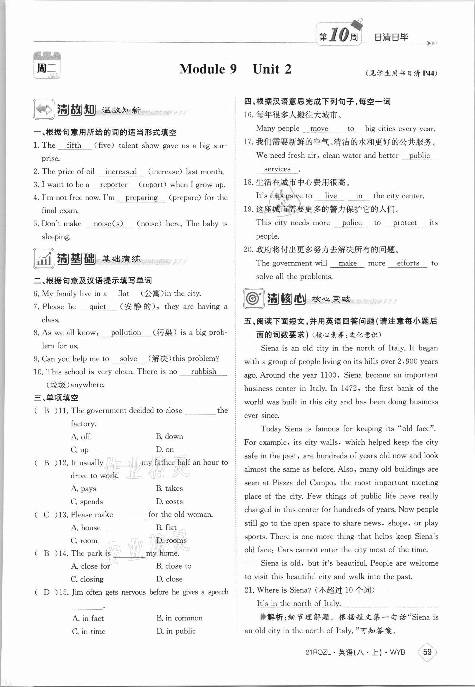 注:目前有些书本章节名称可能整理的还不是很完善,但都是按照顺序排列的,请同学们按照顺序仔细查找。练习册 2021年日清周练八年级英语上册外研版 答案主要是用来给同学们做完题方便对答案用的,请勿直接抄袭。