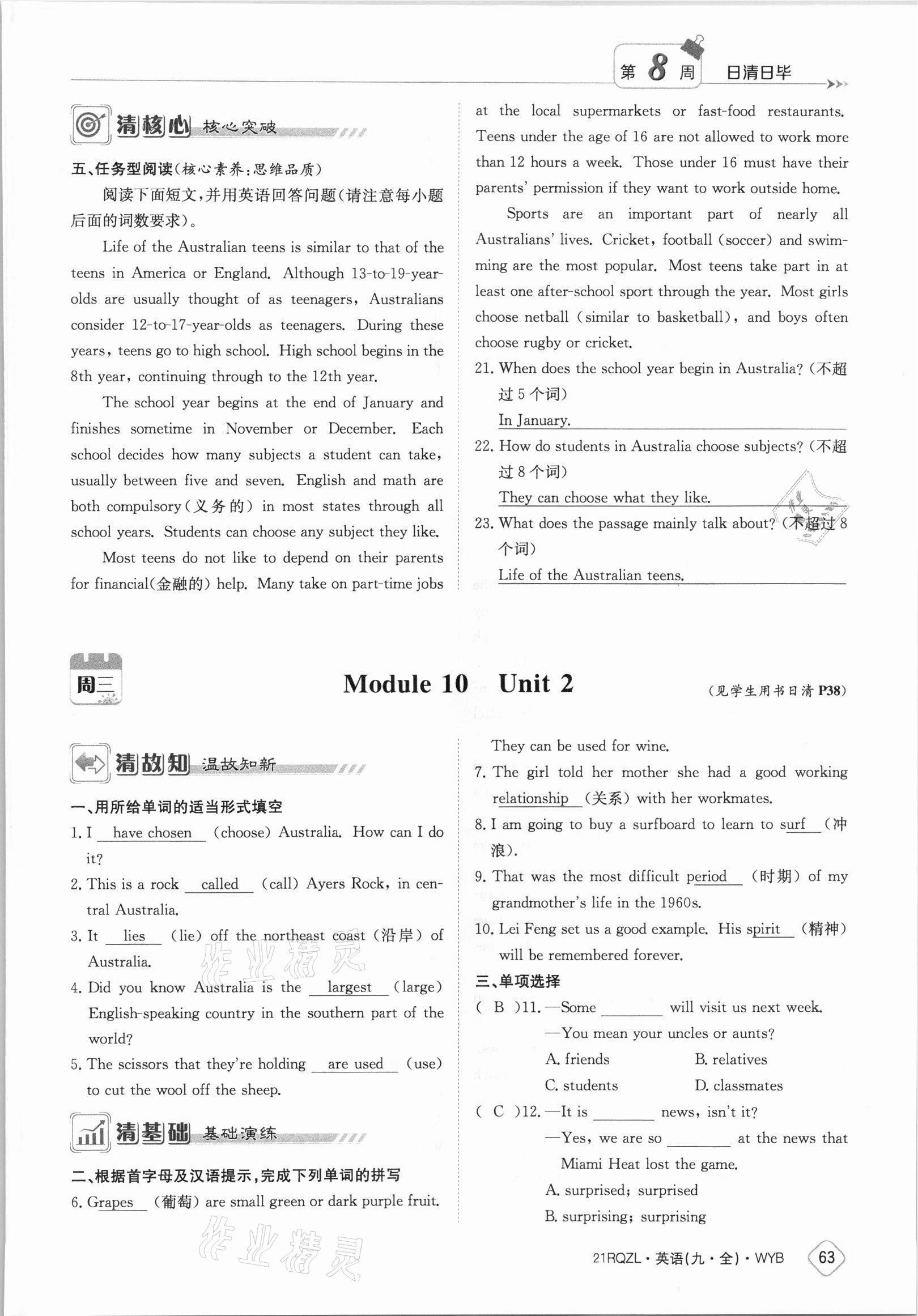 注:目前有些书本章节名称可能整理的还不是很完善,但都是按照顺序排列的,请同学们按照顺序仔细查找。练习册 2021年日清周练九年级英语全一册外研版 答案主要是用来给同学们做完题方便对答案用的,请勿直接抄袭。