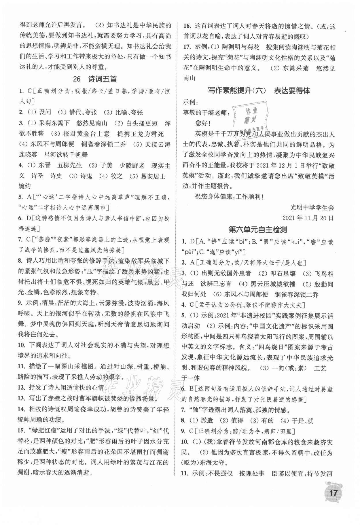 注:目前有些书本章节名称可能整理的还不是很完善,但都是按照顺序排列的,请同学们按照顺序仔细查找。练习册 2021年通城学典课时作业本八年级语文上册人教版 答案主要是用来给同学们做完题方便对答案用的,请勿直接抄袭。