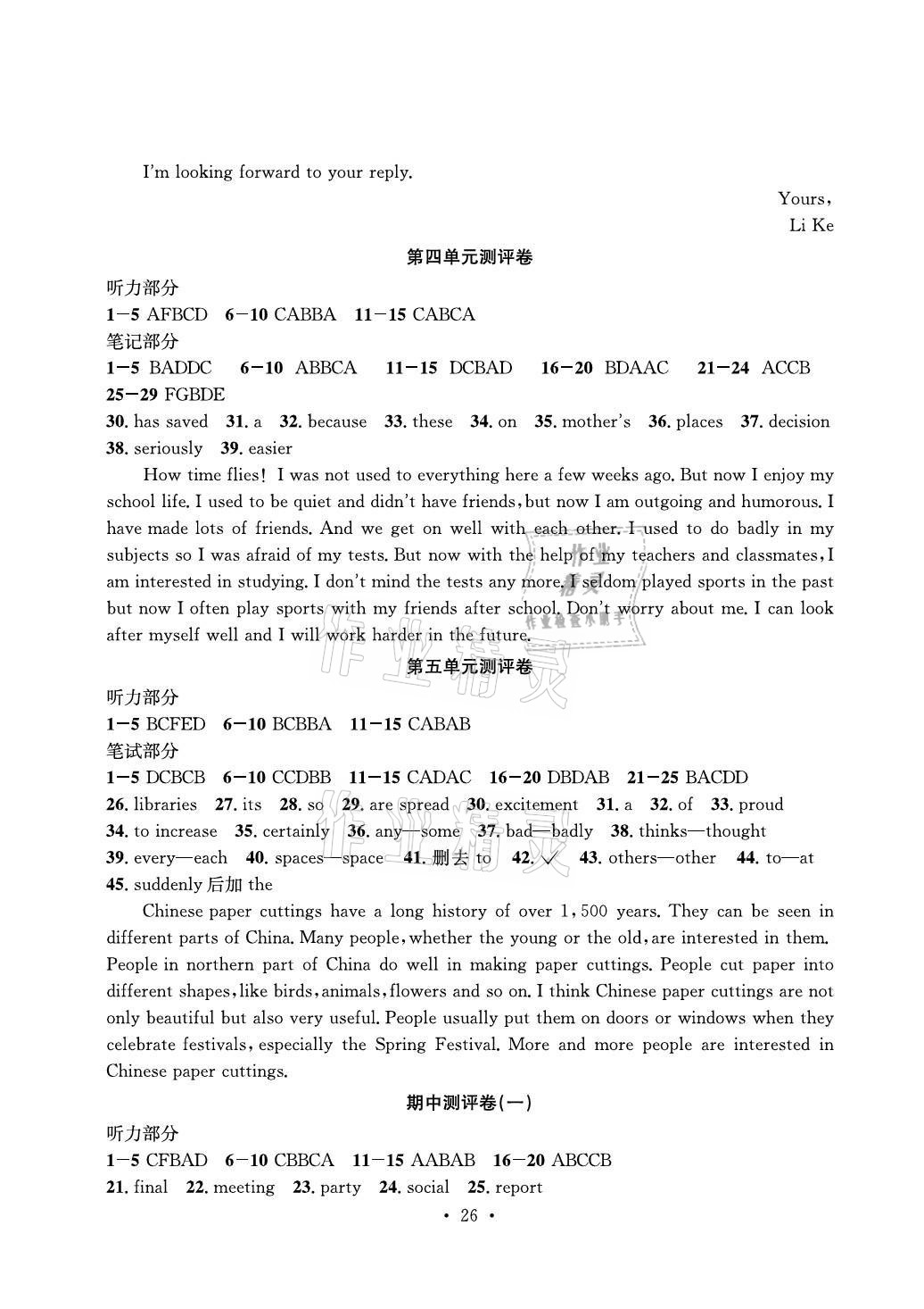 注:目前有些书本章节名称可能整理的还不是很完善,但都是按照顺序排列的,请同学们按照顺序仔细查找。练习册 2021年大显身手素质教育单元测评卷九年级英语B版人教版检6玉林专版 答案主要是用来给同学们做完题方便对答案用的,请勿直接抄袭。