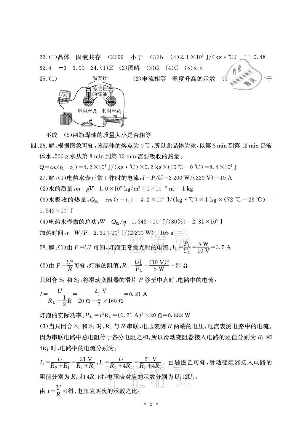 2021年大显身手素质教育单元测评卷九年级物理全一册沪科版检5