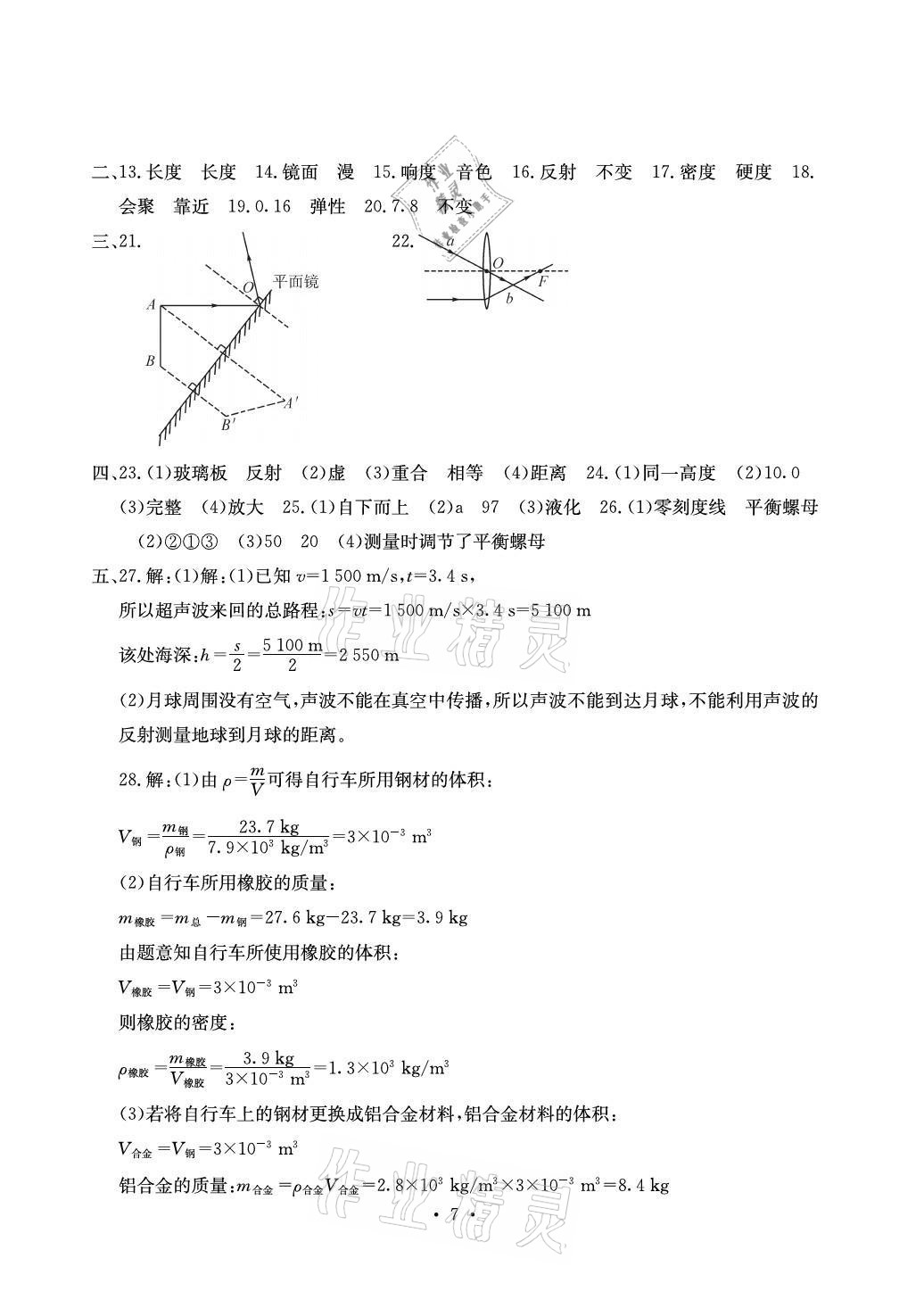 注:目前有些书本章节名称可能整理的还不是很完善,但都是按照顺序排列的,请同学们按照顺序仔细查找。练习册 2021年大显身手素质教育单元测评卷八年级物理上册沪粤版 答案主要是用来给同学们做完题方便对答案用的,请勿直接抄袭。