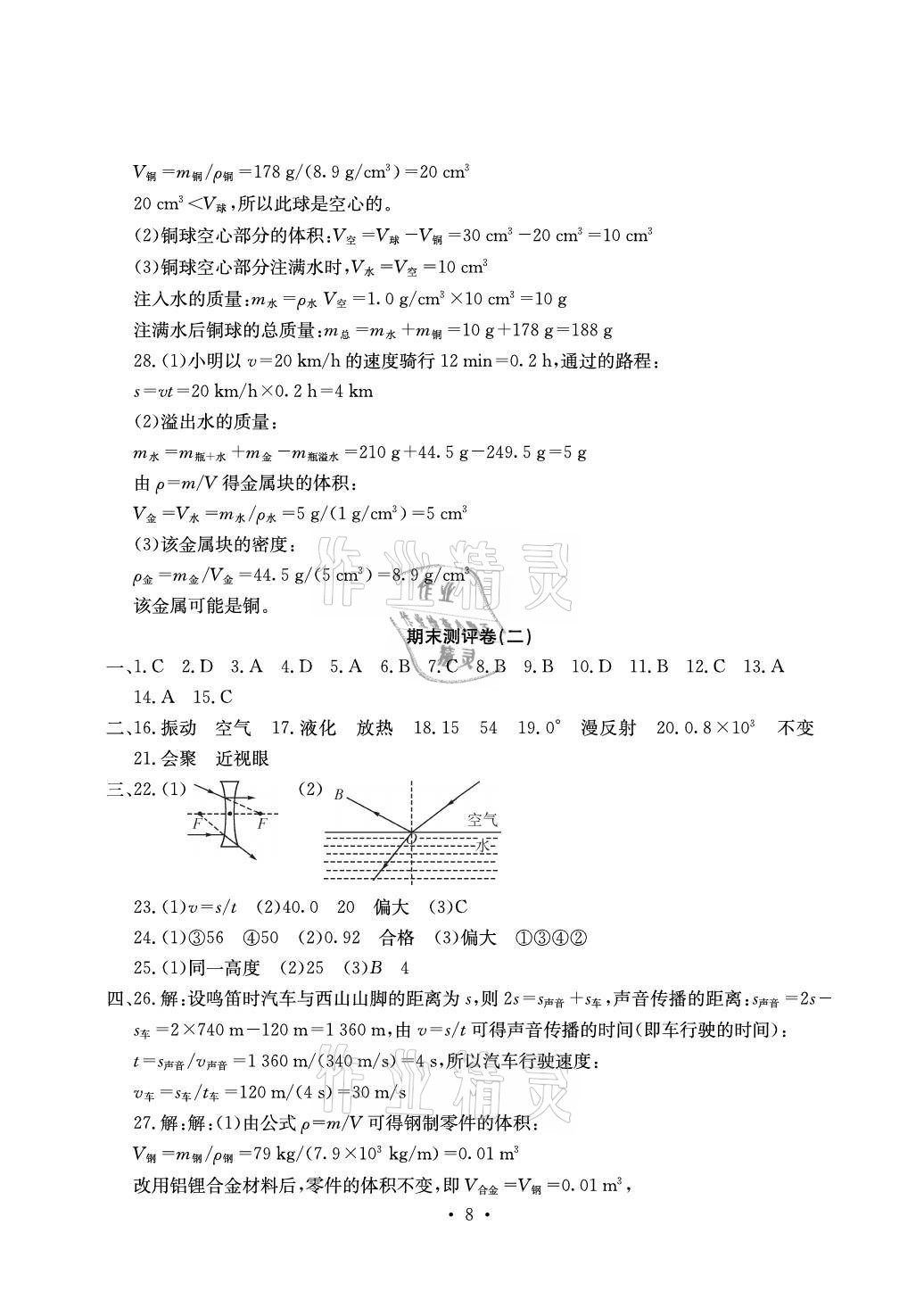 2021年大显身手素质教育单元测评卷八年级物理上册人教版