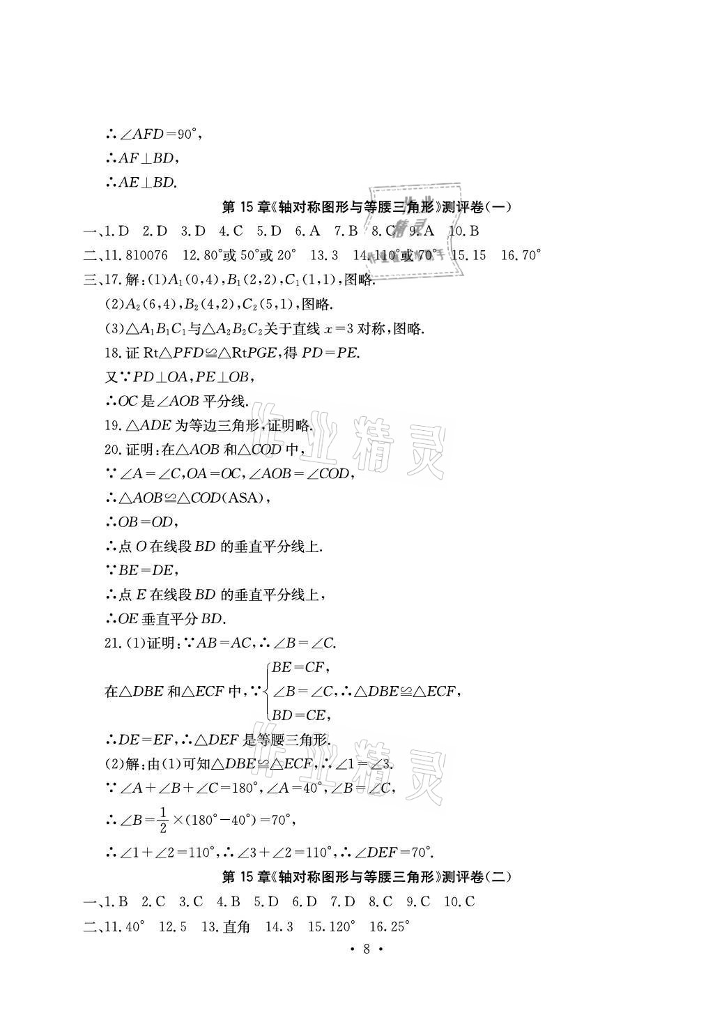 注:目前有些书本章节名称可能整理的还不是很完善,但都是按照顺序排列的,请同学们按照顺序仔细查找。练习册 2021年大显身手素质教育单元测评卷八年级数学上册沪科版 答案主要是用来给同学们做完题方便对答案用的,请勿直接抄袭。