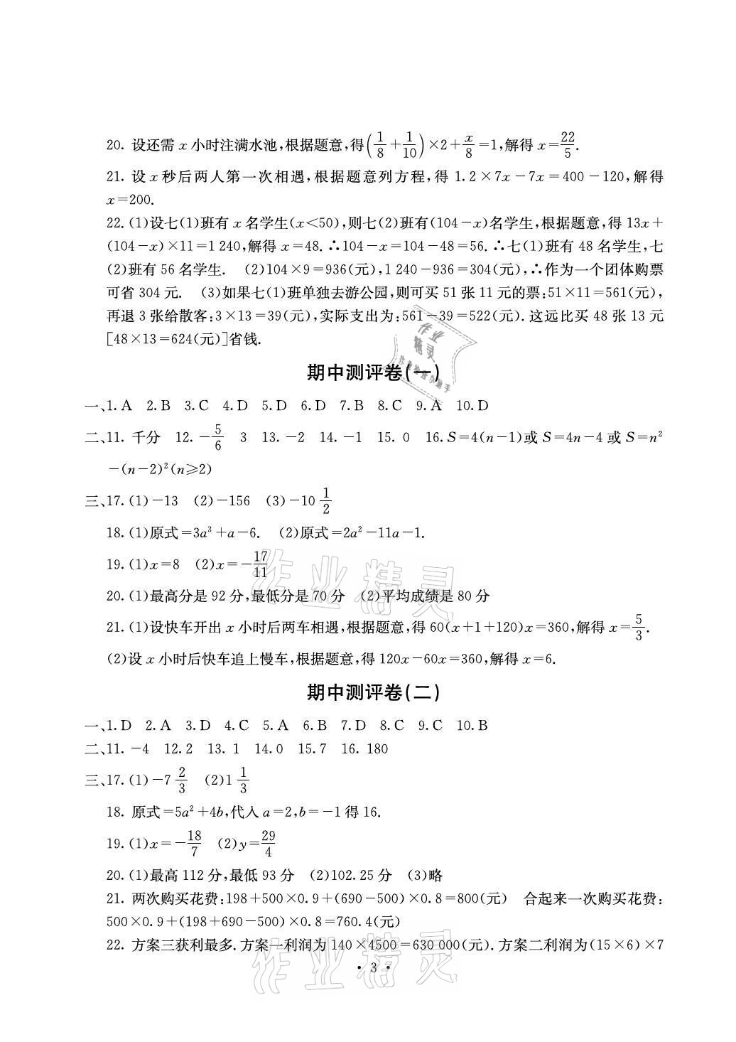 2021年大显身手素质教育单元测评卷七年级数学上册沪科版