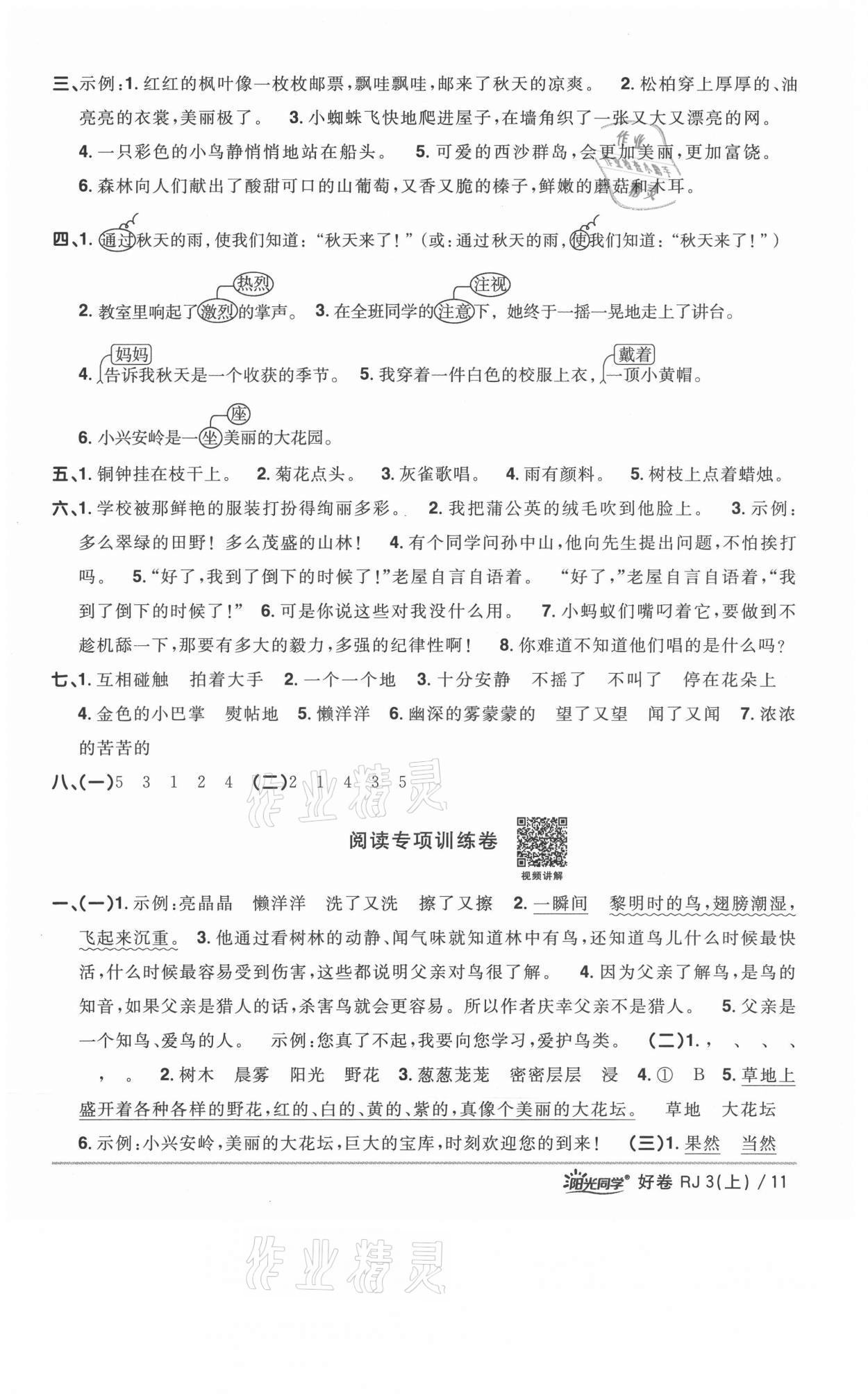 注:目前有些书本章节名称可能整理的还不是很完善,但都是按照顺序排列的,请同学们按照顺序仔细查找。练习册 2021年阳光同学一线名师全优好卷三年级语文上册人教版山东专版 答案主要是用来给同学们做完题方便对答案用的,请勿直接抄袭。