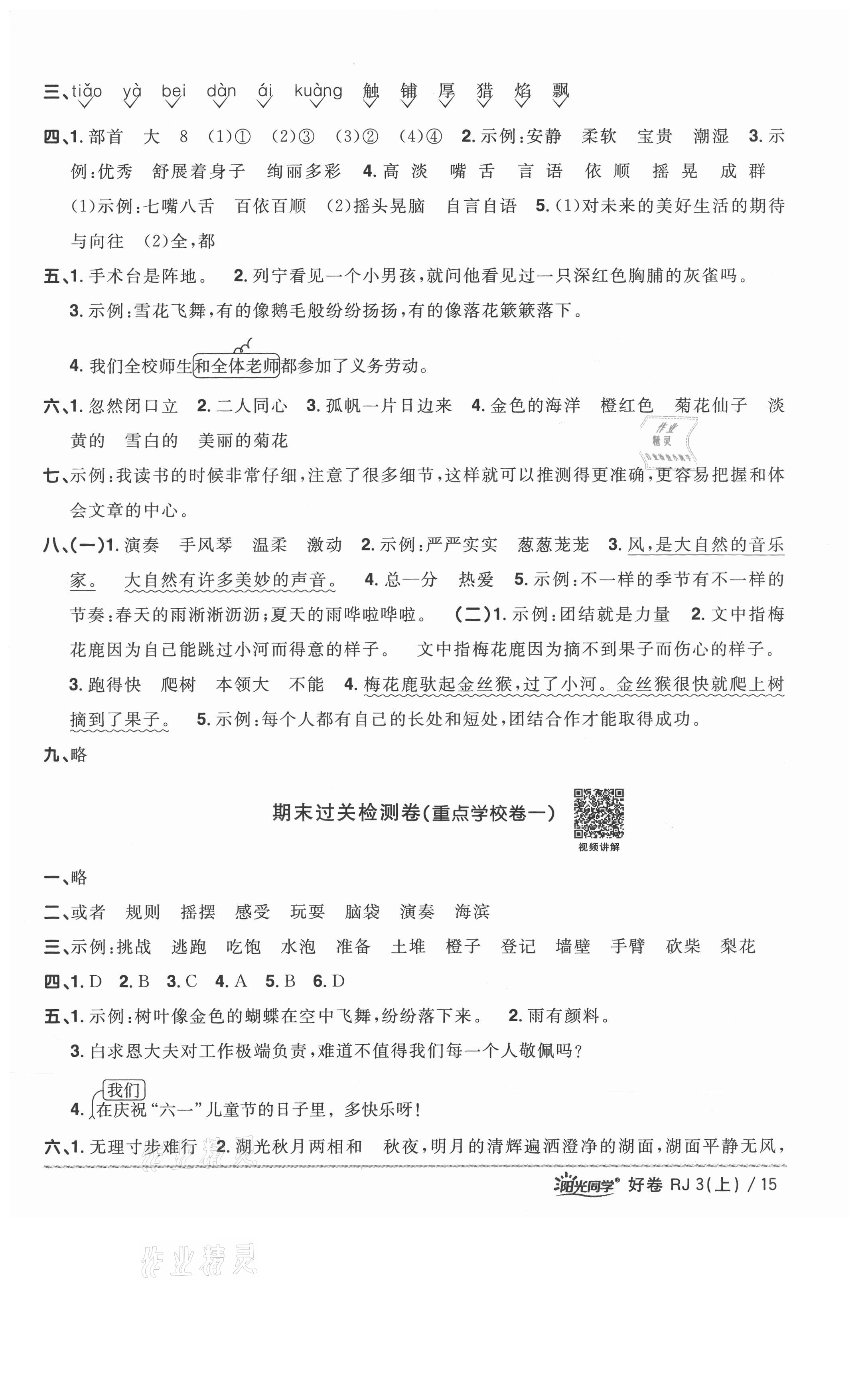 注:目前有些书本章节名称可能整理的还不是很完善,但都是按照顺序排列的,请同学们按照顺序仔细查找。练习册 2021年阳光同学一线名师全优好卷三年级语文上册人教版山东专版 答案主要是用来给同学们做完题方便对答案用的,请勿直接抄袭。