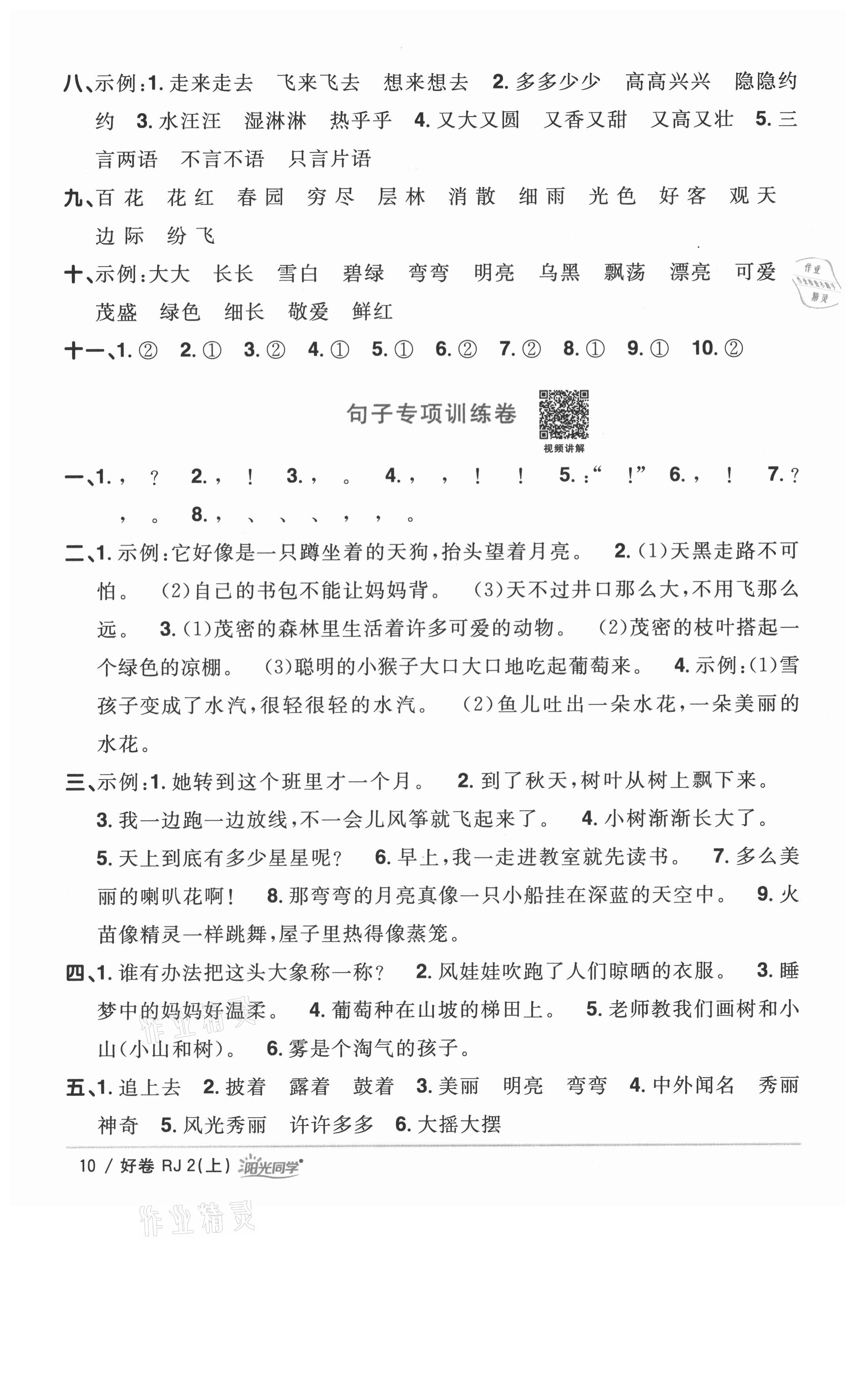 注:目前有些书本章节名称可能整理的还不是很完善,但都是按照顺序排列的,请同学们按照顺序仔细查找。练习册 2021年阳光同学一线名师全优好卷二年级语文上册人教版山东专版 答案主要是用来给同学们做完题方便对答案用的,请勿直接抄袭。