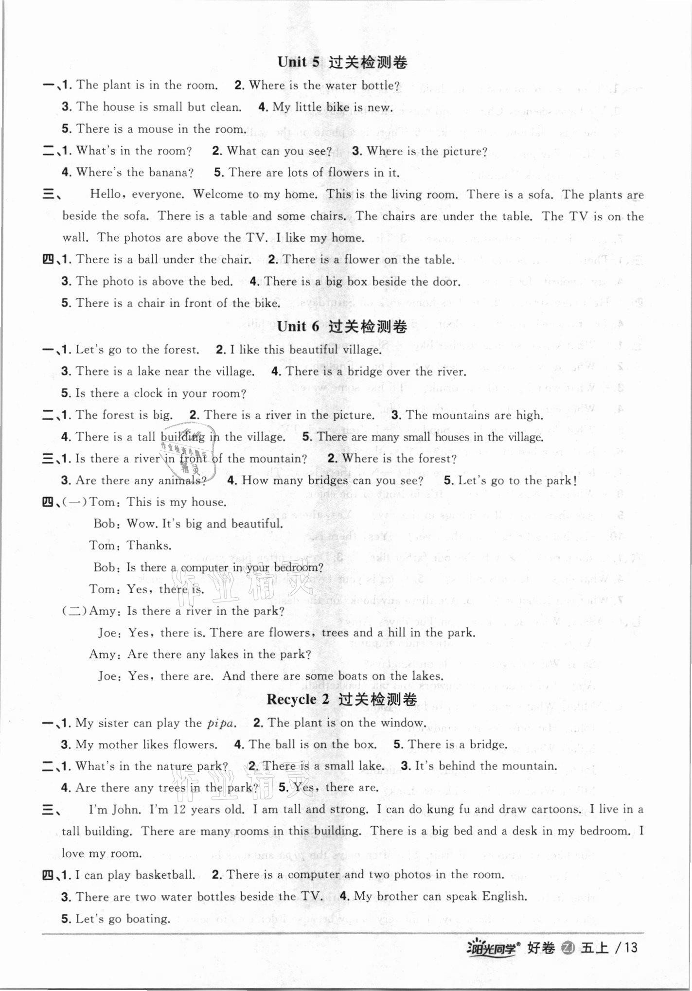 《2021年阳光同学全优达标好卷五年级英语上册人教PEP版浙江专版》
