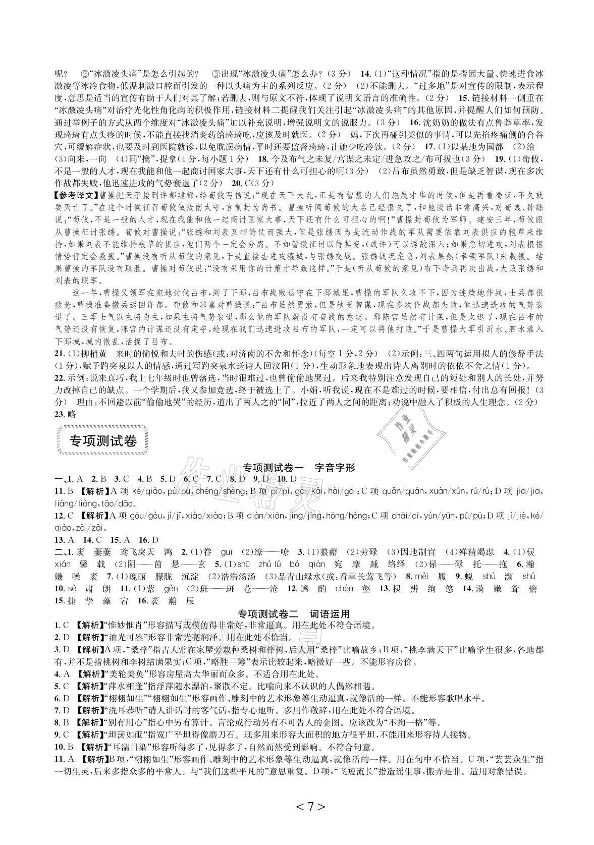 注:目前有些书本章节名称可能整理的还不是很完善,但都是按照顺序排列的,请同学们按照顺序仔细查找。练习册 2021年全优单元同步测试卷八年级语文上册人教版 答案主要是用来给同学们做完题方便对答案用的,请勿直接抄袭。