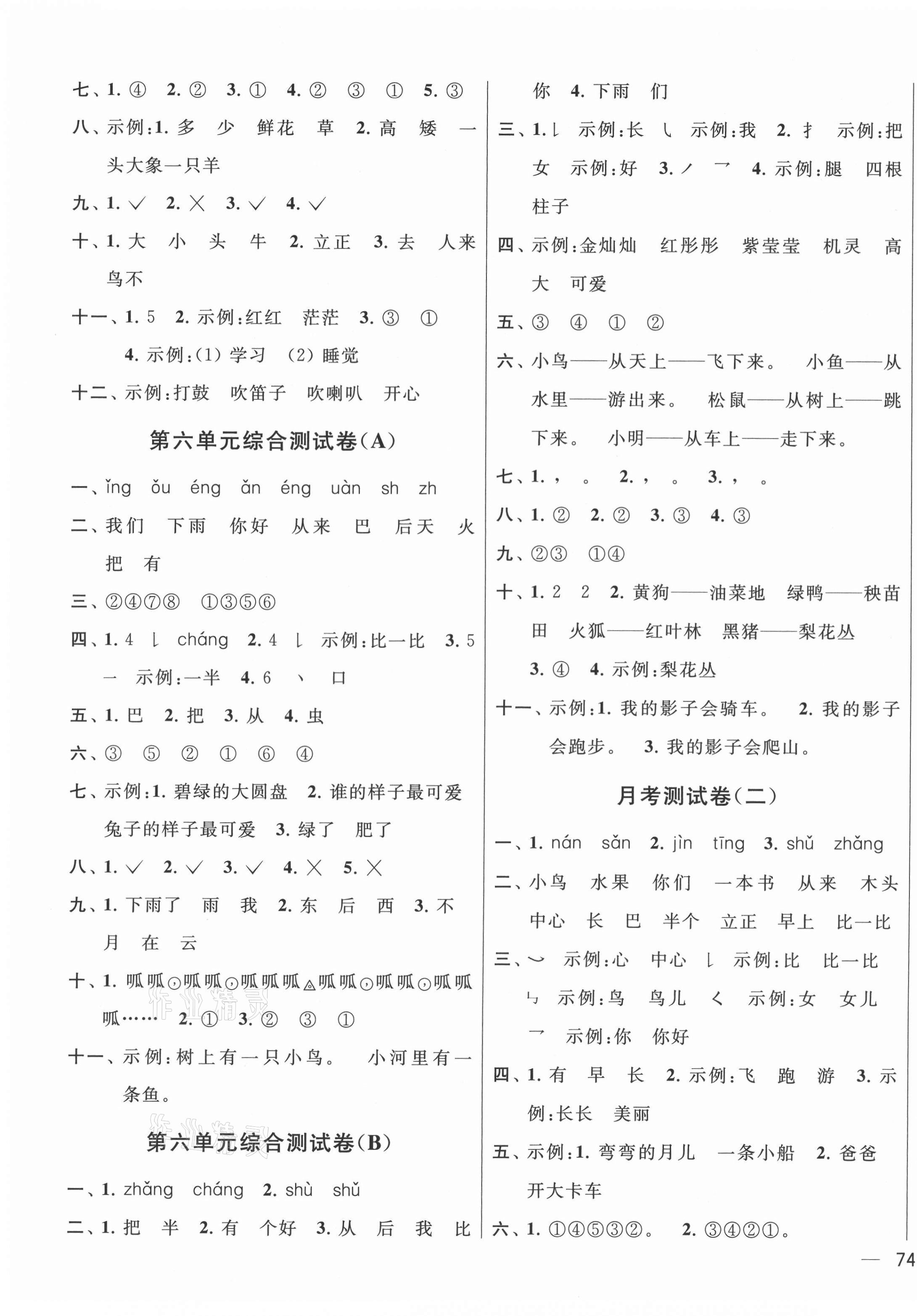 注:目前有些书本章节名称可能整理的还不是很完善,但都是按照顺序排列的,请同学们按照顺序仔细查找。练习册 2021年亮点给力大试卷一年级语文上册人教版江苏专版 答案主要是用来给同学们做完题方便对答案用的,请勿直接抄袭。