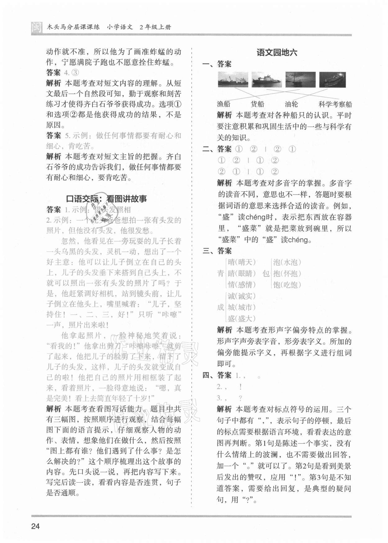 注:目前有些书本章节名称可能整理的还不是很完善,但都是按照顺序排列的,请同学们按照顺序仔细查找。练习册 2021年木头马分层课课练二年级语文上册人教版福建专版 答案主要是用来给同学们做完题方便对答案用的,请勿直接抄袭。
