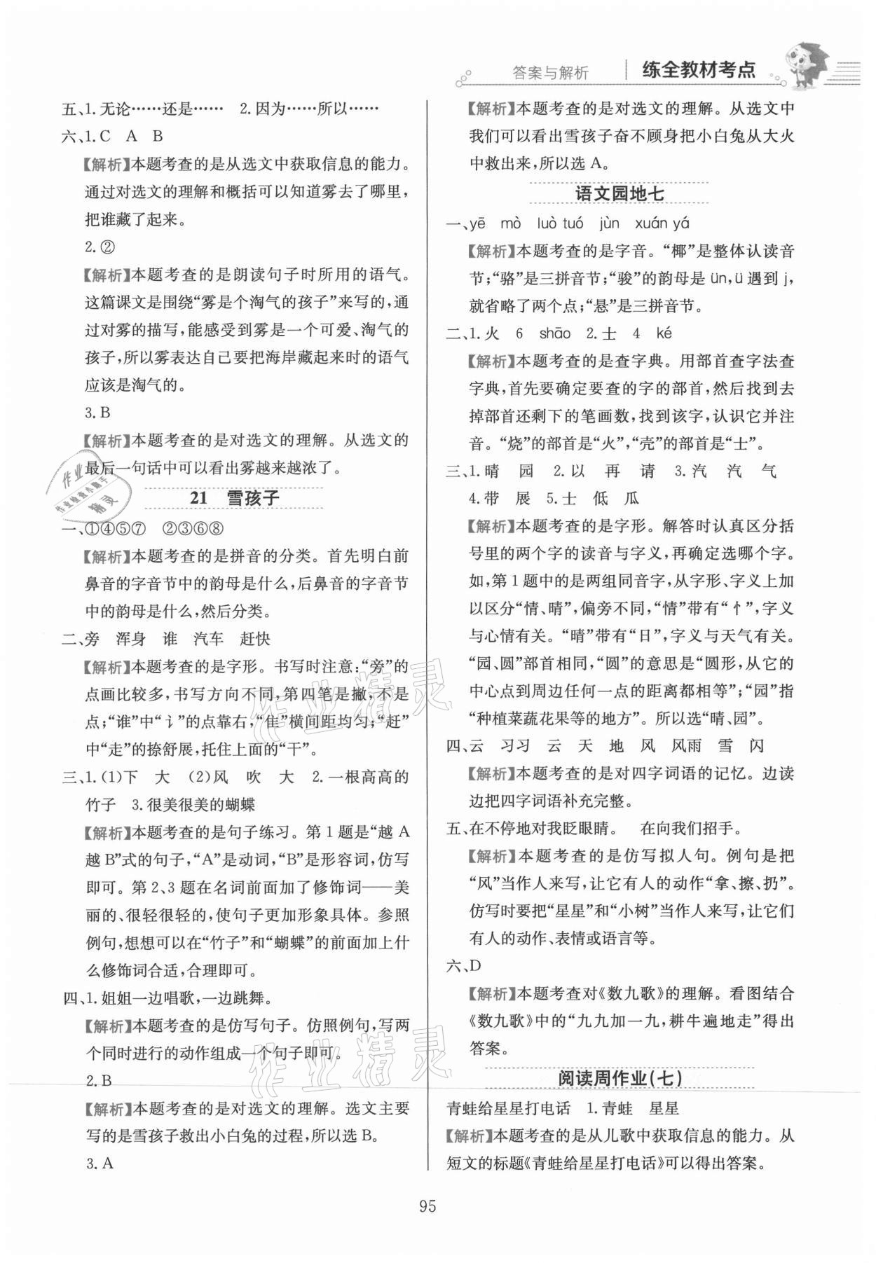 注:目前有些书本章节名称可能整理的还不是很完善,但都是按照顺序排列的,请同学们按照顺序仔细查找。练习册 2021年教材全练二年级语文上册人教版 答案主要是用来给同学们做完题方便对答案用的,请勿直接抄袭。
