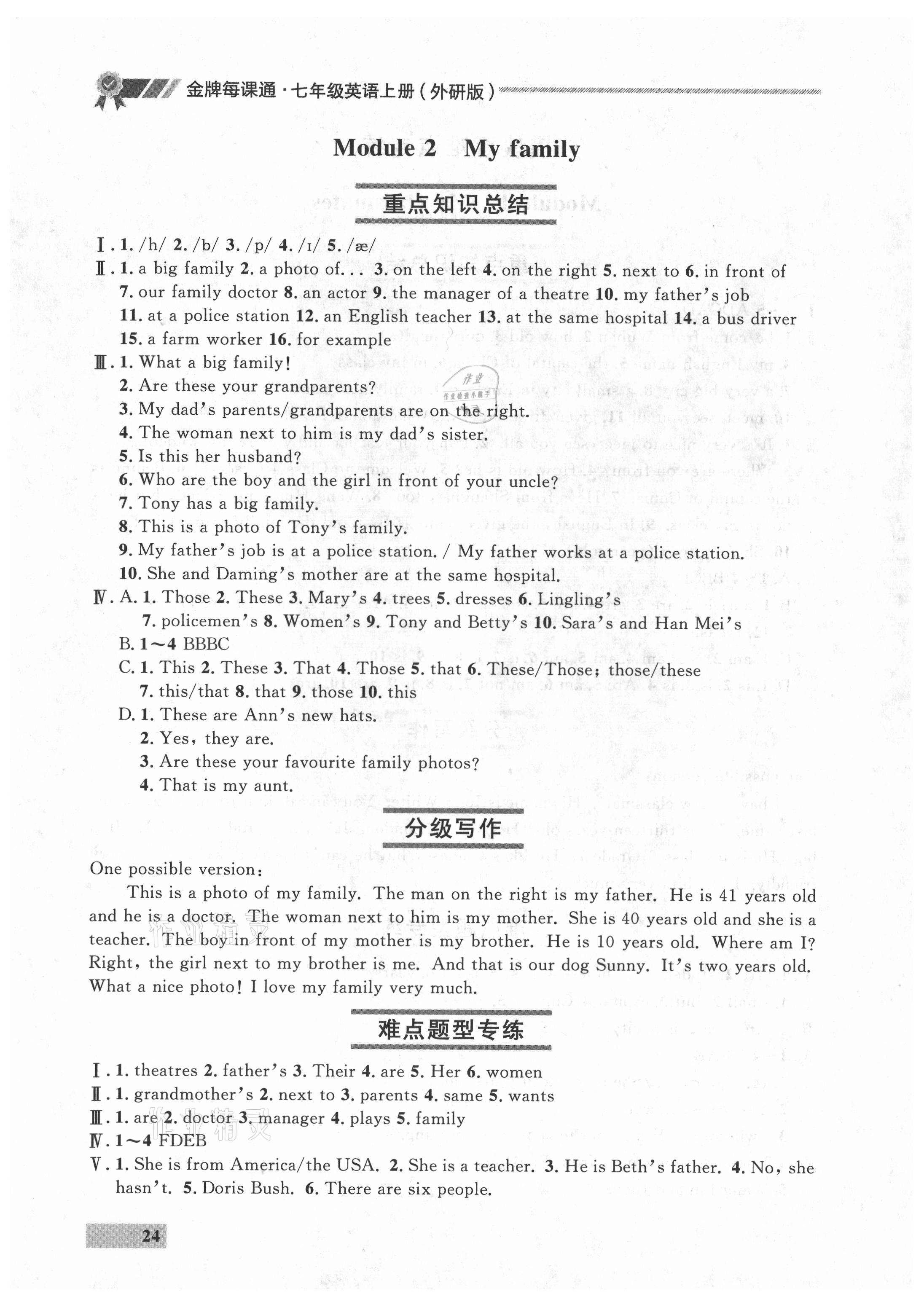 注:目前有些书本章节名称可能整理的还不是很完善,但都是按照顺序排列的,请同学们按照顺序仔细查找。练习册 2021年点石成金金牌每课通七年级英语上册外研版大连专版 答案主要是用来给同学们做完题方便对答案用的,请勿直接抄袭。
