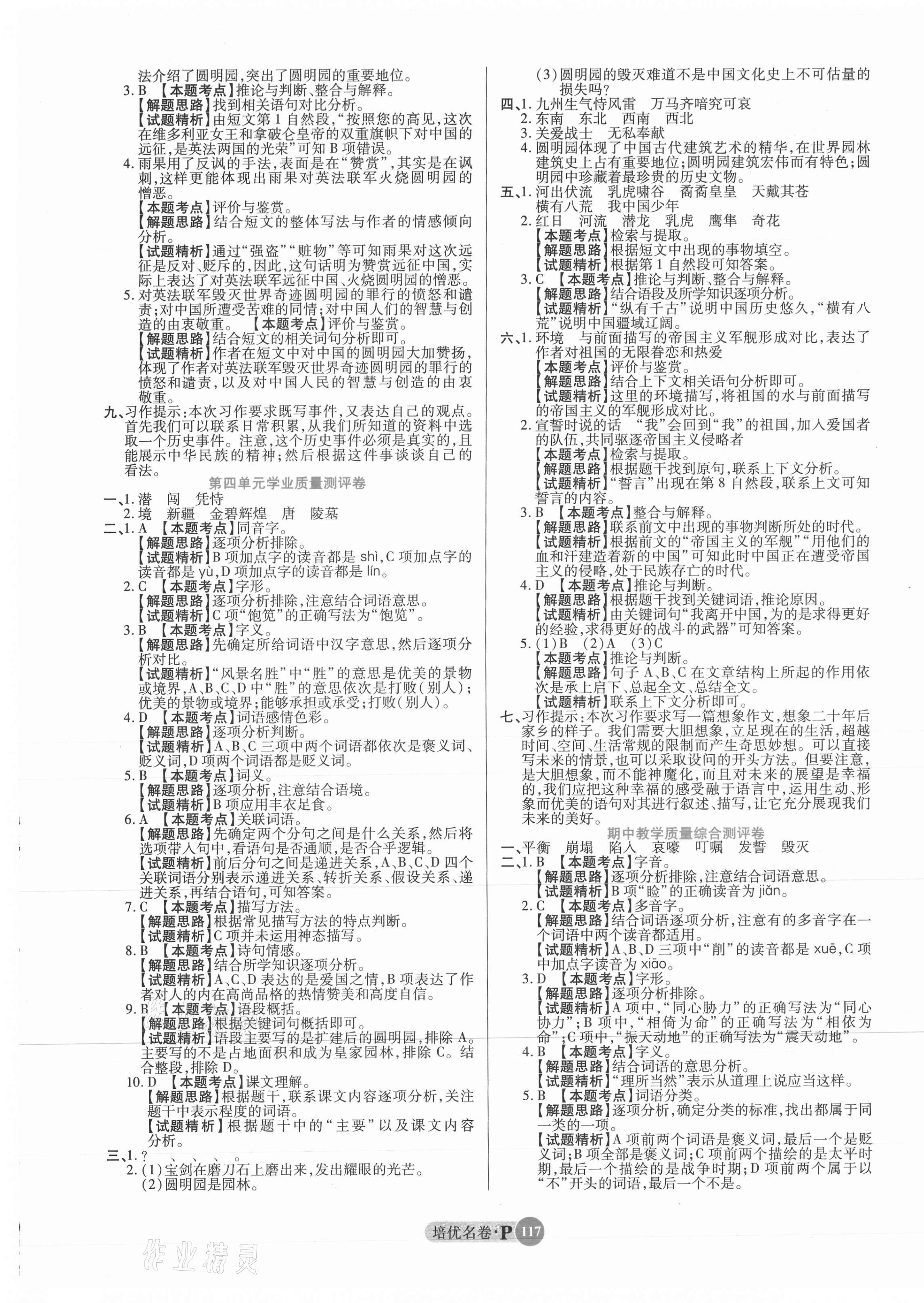 注:目前有些书本章节名称可能整理的还不是很完善,但都是按照顺序排列的,请同学们按照顺序仔细查找。练习册 2021年培优名卷五年级语文上册人教版 答案主要是用来给同学们做完题方便对答案用的,请勿直接抄袭。