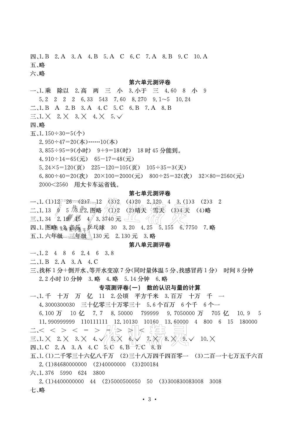 《2021年大显身手素质教育单元测评卷四年级数学上册人教版D版》