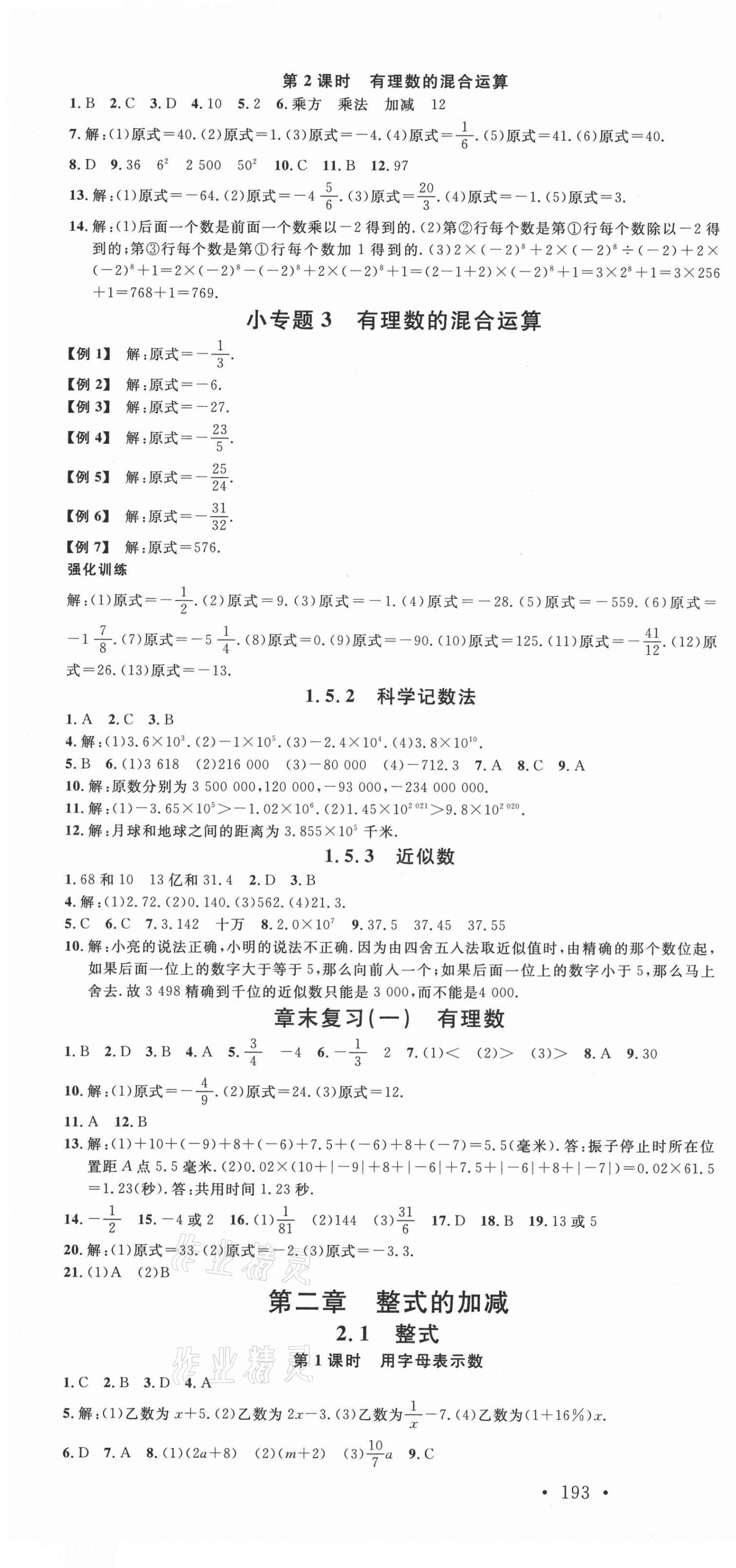 《2021年名校课堂七年级数学上册人教版遵义专版》