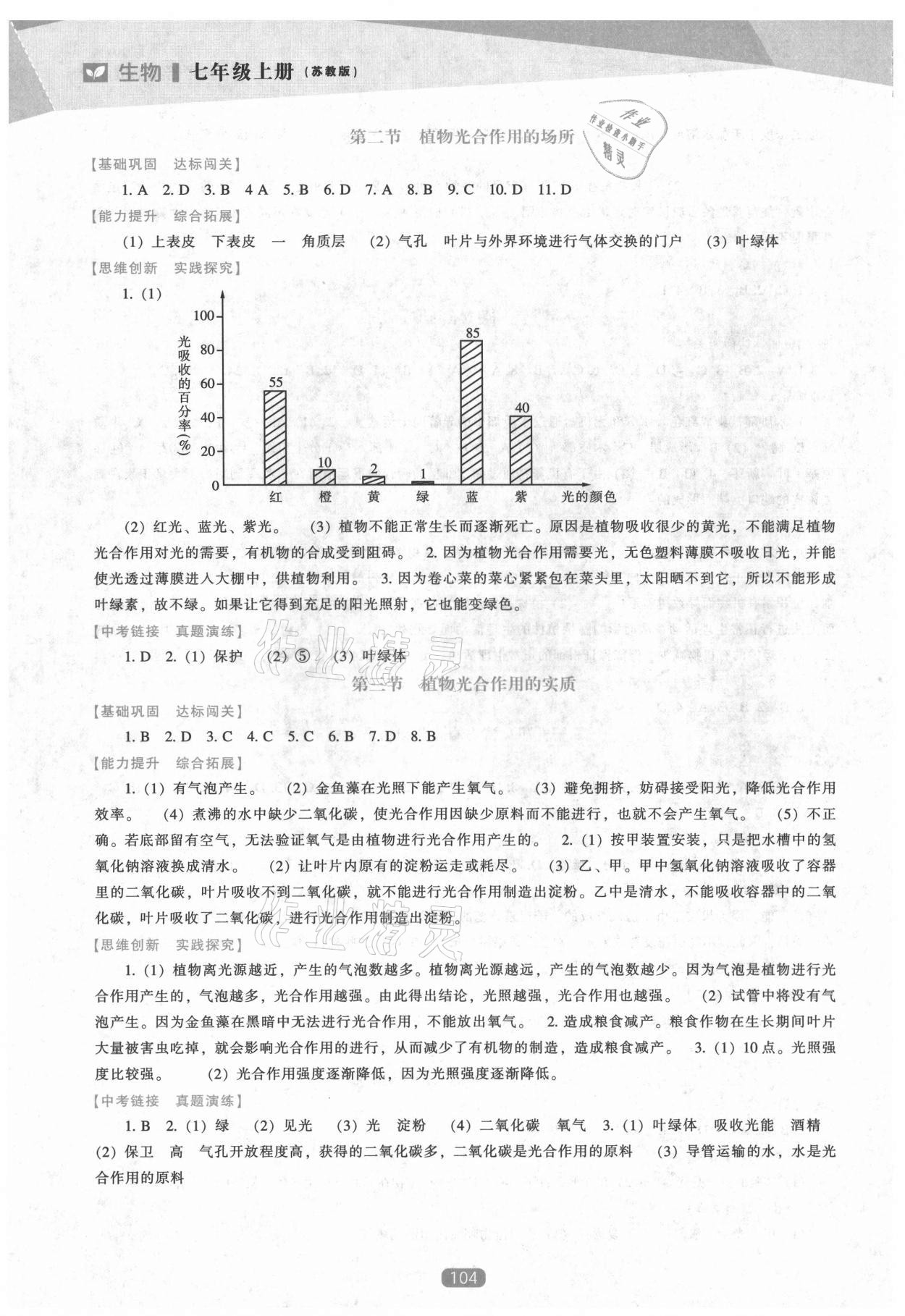 注:目前有些书本章节名称可能整理的还不是很完善,但都是按照顺序排列的,请同学们按照顺序仔细查找。练习册 2021年新课程生物能力培养七年级上册苏教版 答案主要是用来给同学们做完题方便对答案用的,请勿直接抄袭。