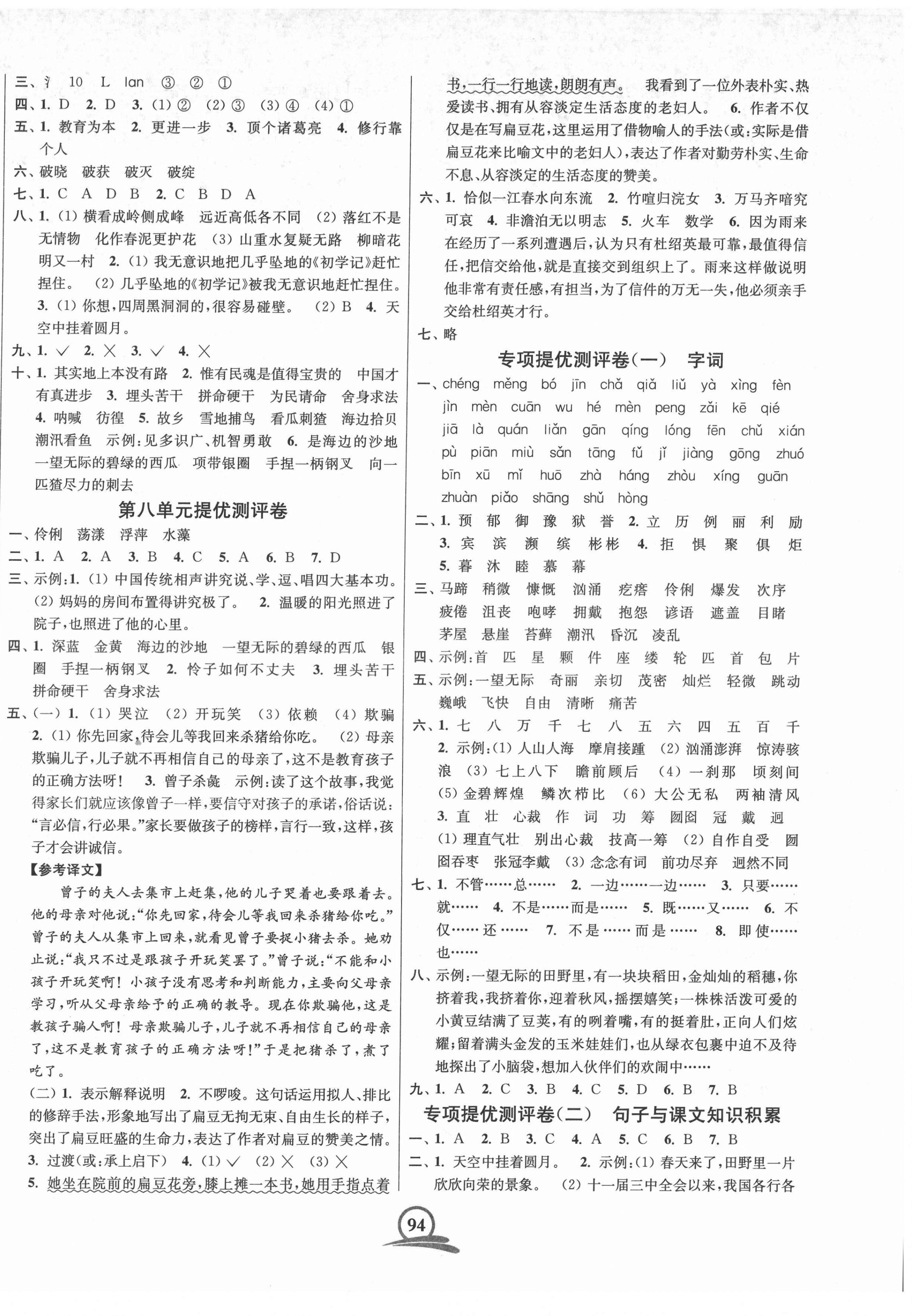 注:目前有些书本章节名称可能整理的还不是很完善,但都是按照顺序排列的,请同学们按照顺序仔细查找。练习册 2021年直击考点冲刺100分六年级语文上册人教版 答案主要是用来给同学们做完题方便对答案用的,请勿直接抄袭。