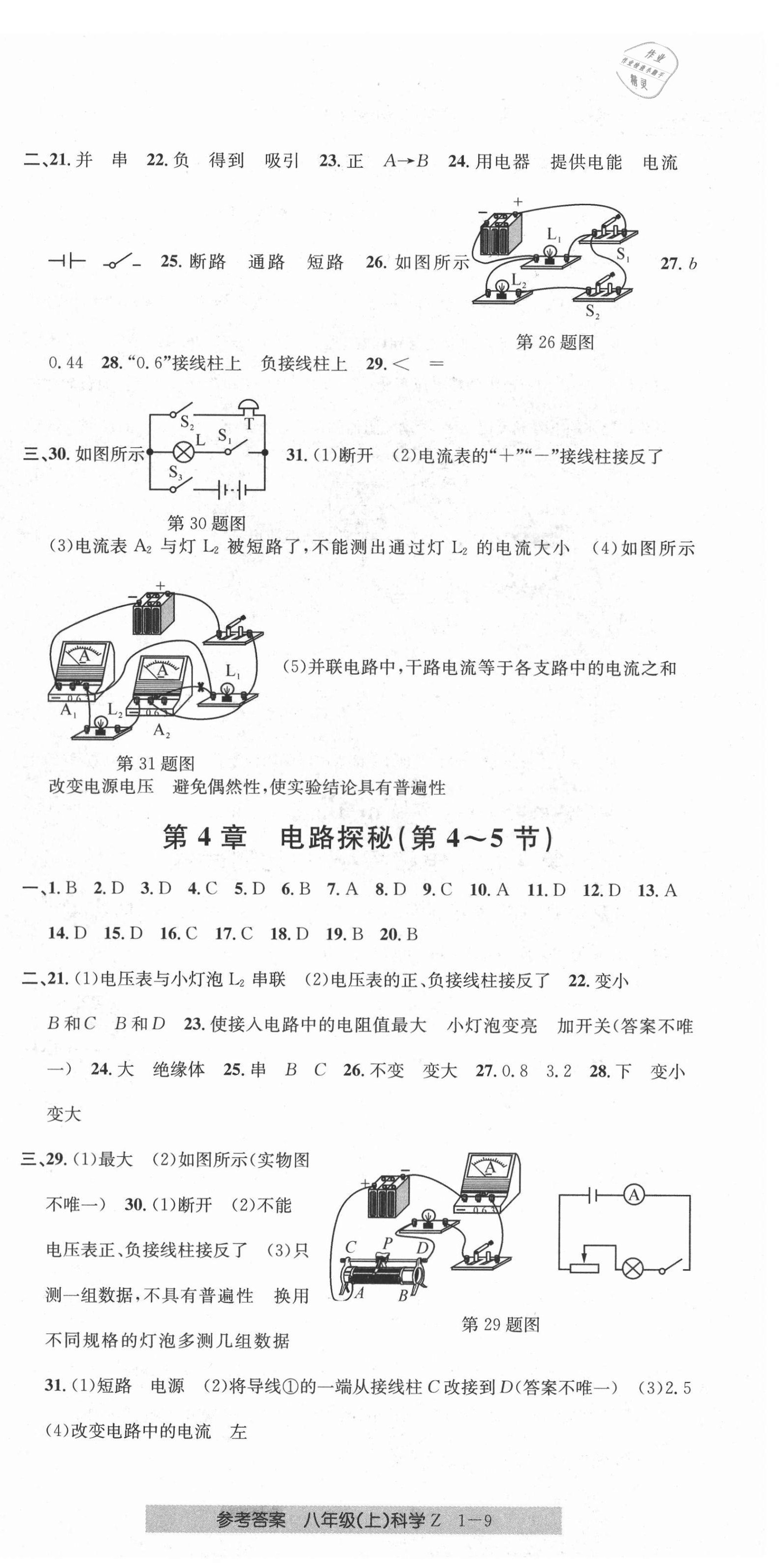 注:目前有些书本章节名称可能整理的还不是很完善,但都是按照顺序排列的,请同学们按照顺序仔细查找。练习册 2021年开源图书单元直通车八年级科学上册浙教版 答案主要是用来给同学们做完题方便对答案用的,请勿直接抄袭。
