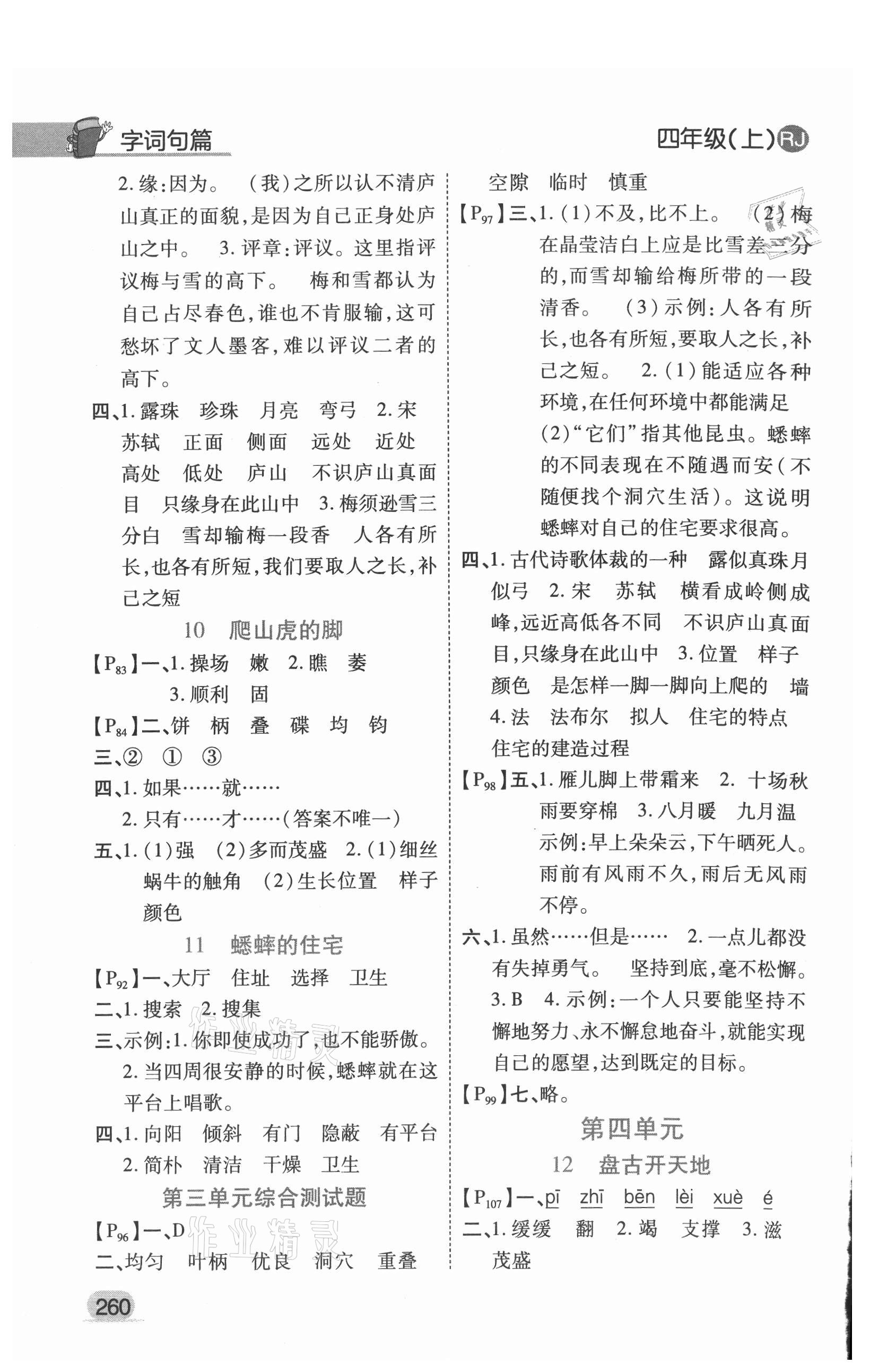 注:目前有些书本章节名称可能整理的还不是很完善,但都是按照顺序排列的,请同学们按照顺序仔细查找。练习册 2021年字词句篇开明出版社四年级语文上册人教版 答案主要是用来给同学们做完题方便对答案用的,请勿直接抄袭。