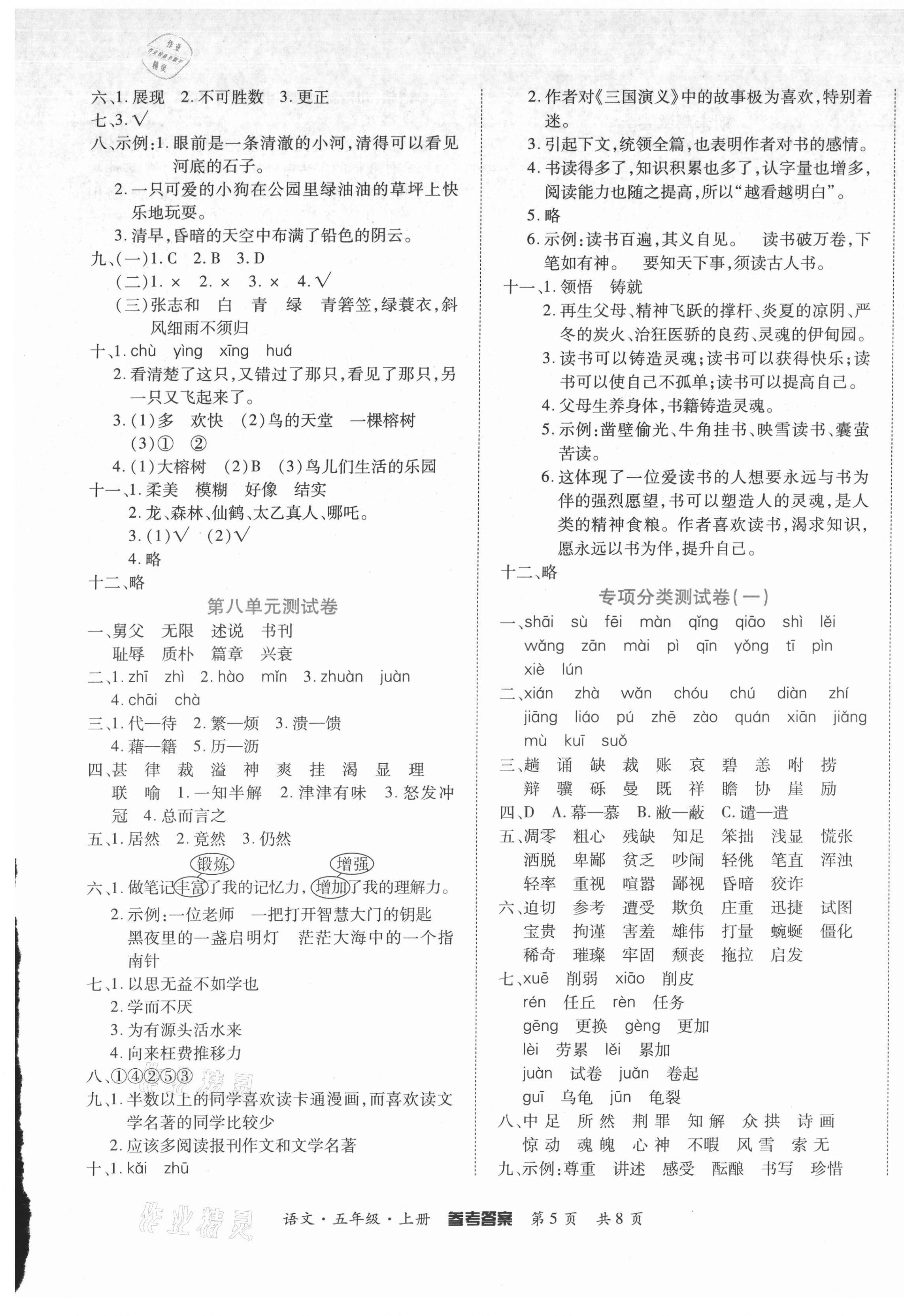 注:目前有些书本章节名称可能整理的还不是很完善,但都是按照顺序排列的,请同学们按照顺序仔细查找。练习册 2021年金榜必刷卷五年级语文上册人教版 答案主要是用来给同学们做完题方便对答案用的,请勿直接抄袭。