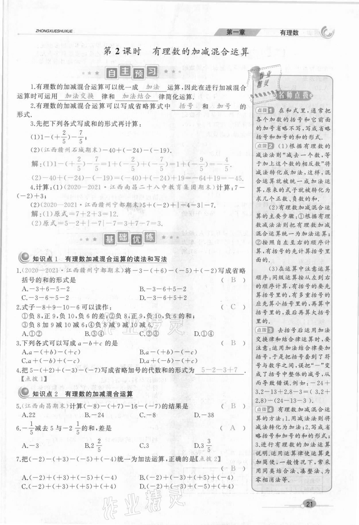 注:目前有些书本章节名称可能整理的还不是很完善,但都是按照顺序排列的,请同学们按照顺序仔细查找。练习册 2021年A加优化作业本七年级数学上册人教版江西专版 答案主要是用来给同学们做完题方便对答案用的,请勿直接抄袭。