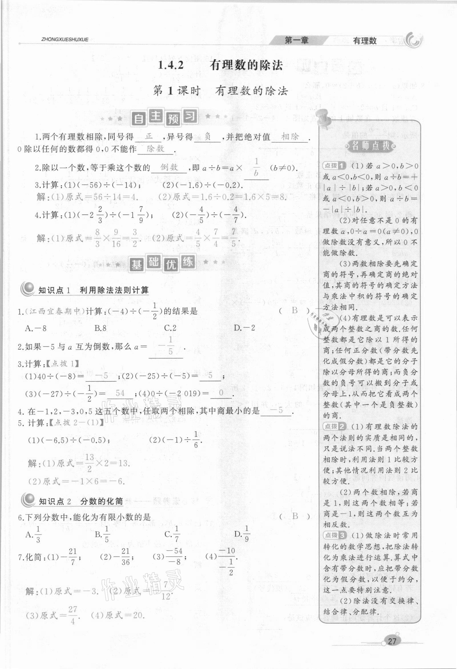 注:目前有些书本章节名称可能整理的还不是很完善,但都是按照顺序排列的,请同学们按照顺序仔细查找。练习册 2021年A加优化作业本七年级数学上册人教版江西专版 答案主要是用来给同学们做完题方便对答案用的,请勿直接抄袭。