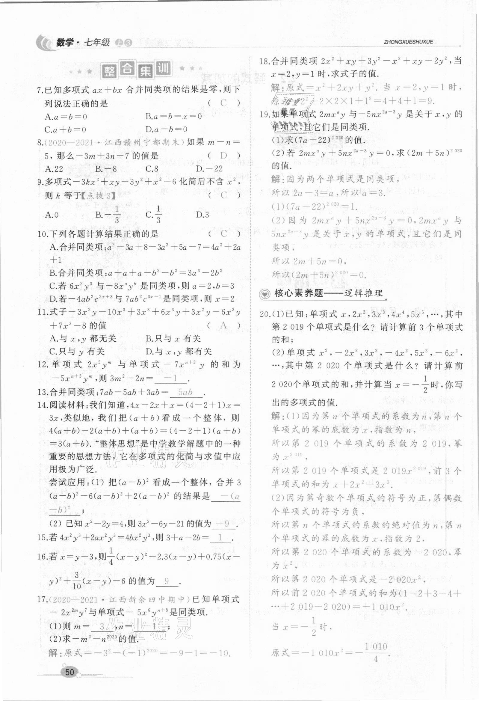 2021年A加优化作业本七年级数学上册人教版江西专版