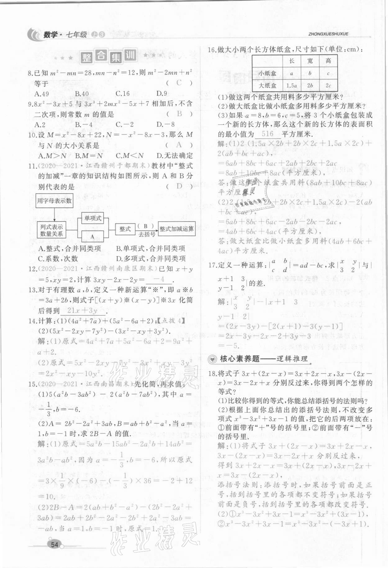 注:目前有些书本章节名称可能整理的还不是很完善,但都是按照顺序排列的,请同学们按照顺序仔细查找。练习册 2021年A加优化作业本七年级数学上册人教版江西专版 答案主要是用来给同学们做完题方便对答案用的,请勿直接抄袭。