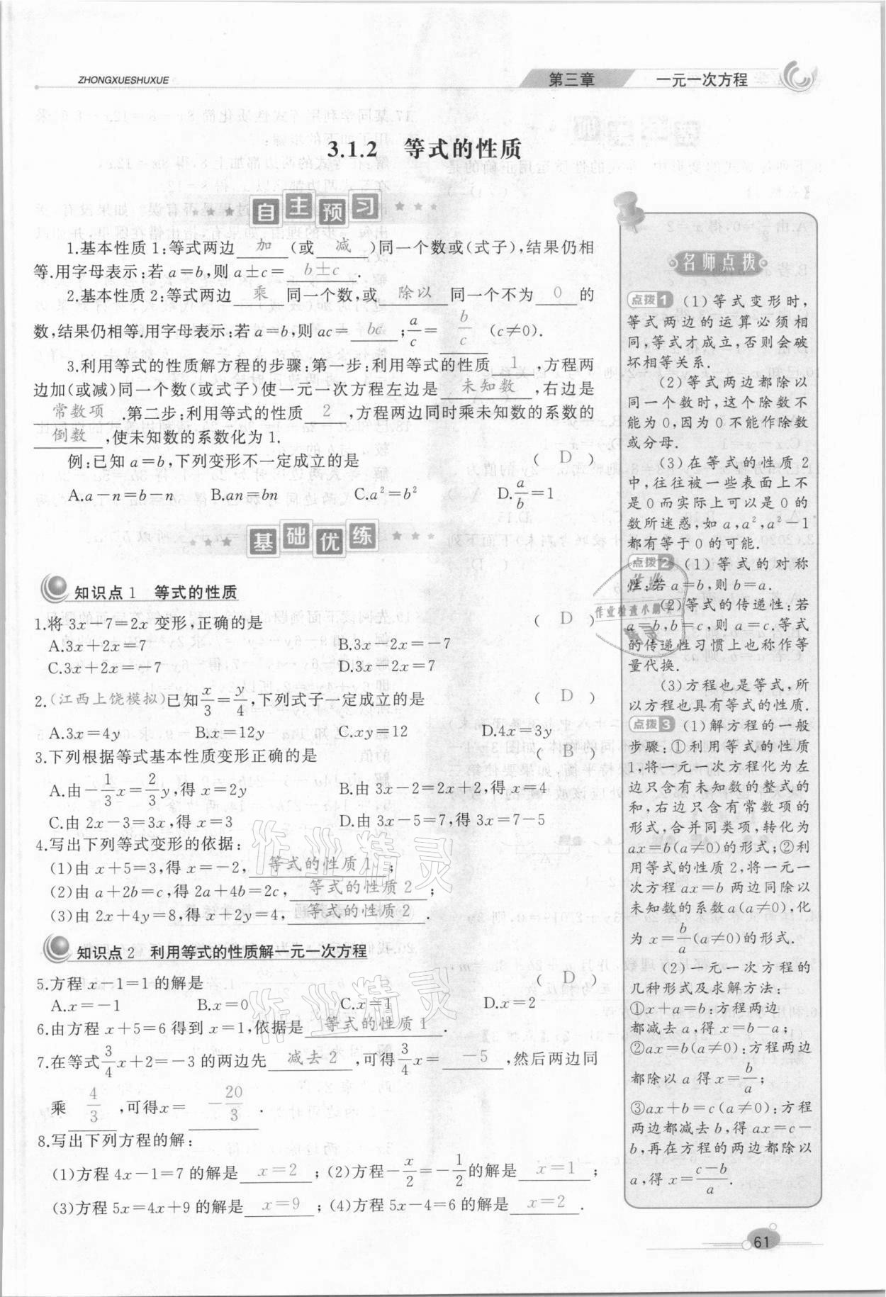 注:目前有些书本章节名称可能整理的还不是很完善,但都是按照顺序排列的,请同学们按照顺序仔细查找。练习册 2021年A加优化作业本七年级数学上册人教版江西专版 答案主要是用来给同学们做完题方便对答案用的,请勿直接抄袭。