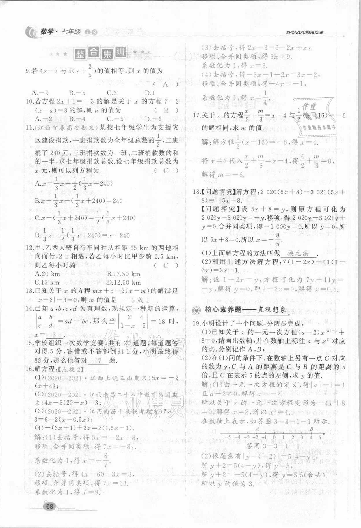 注:目前有些书本章节名称可能整理的还不是很完善,但都是按照顺序排列的,请同学们按照顺序仔细查找。练习册 2021年A加优化作业本七年级数学上册人教版江西专版 答案主要是用来给同学们做完题方便对答案用的,请勿直接抄袭。