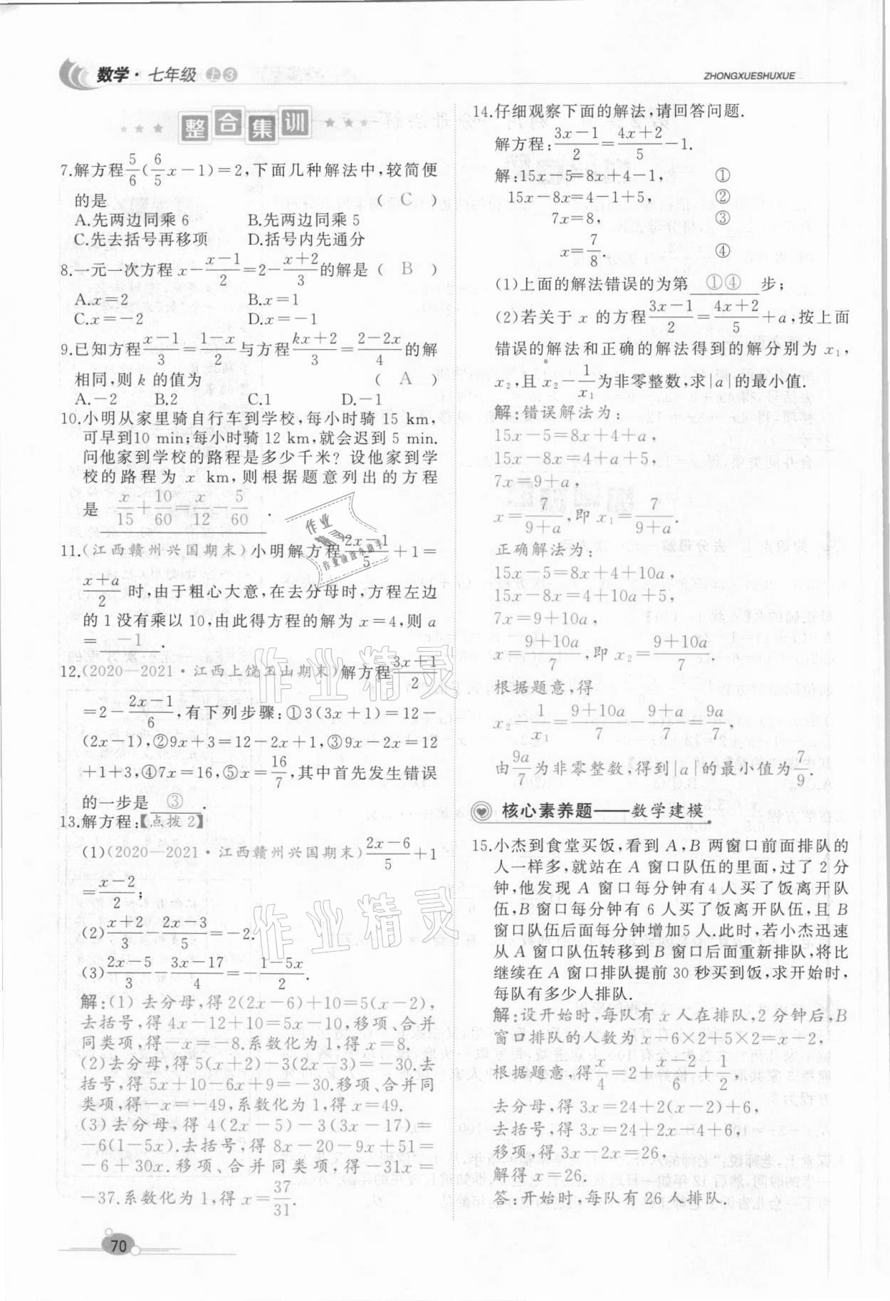2021年A加优化作业本七年级数学上册人教版江西专版